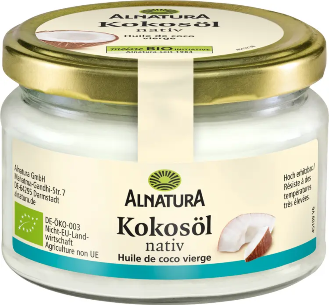 El aceite de coco se puede utilizar tanto para cocinar como para la preparación de postres y productos horneados. El dulzor natural de este aceite da un toque especial y exótico a los platos. Ya sea para curry, sopas, postres, tartas o pasteles, este aceite de coco de Alnatura se puede calentar a altas temperaturas y aporta a tus creaciones una nota aromática seductora. Los cocos proceden de agricultura biológica y han sido prensados en frío suavemente, por lo que este producto puede presumir del término "virgen".
