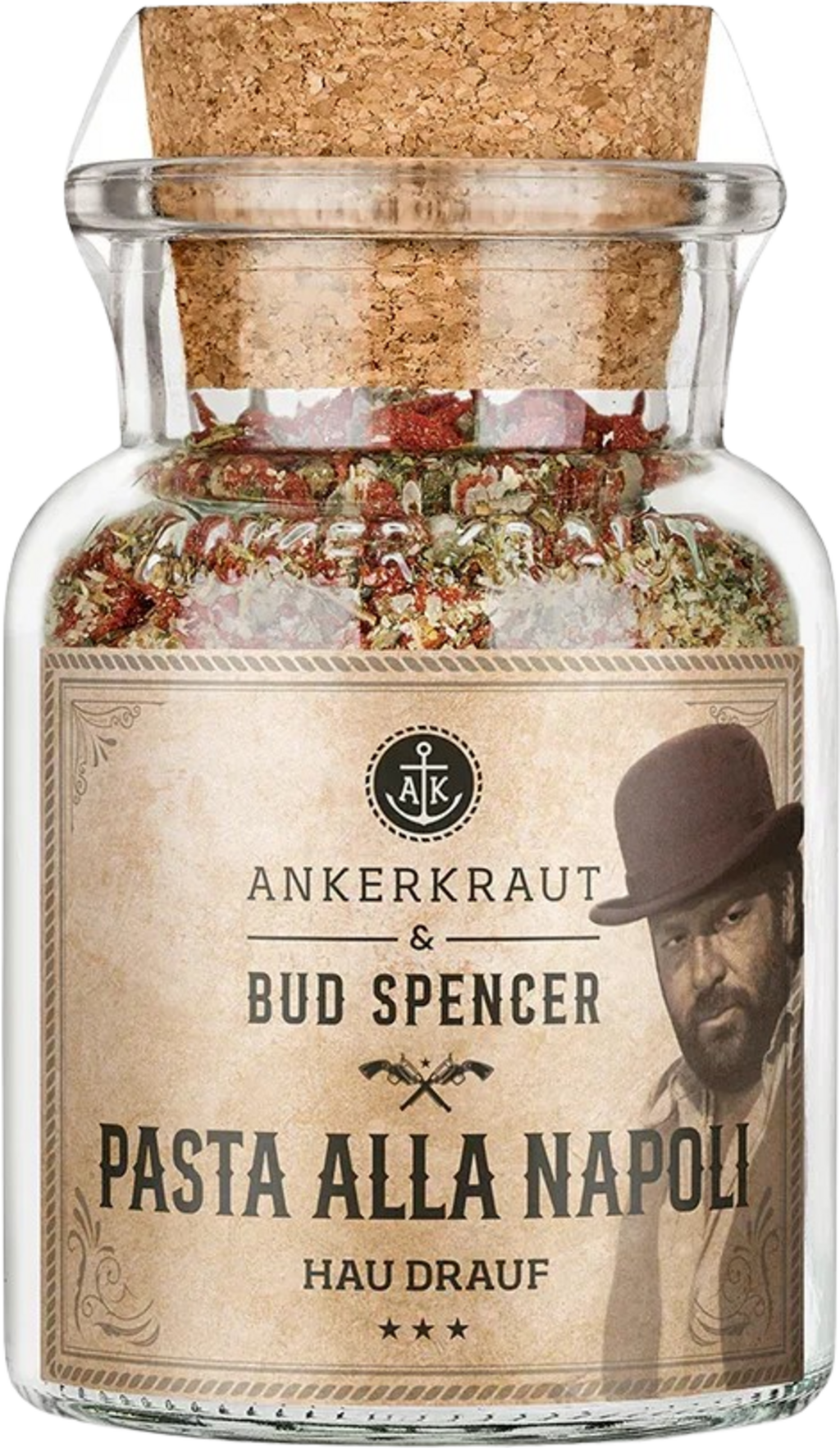 La mezcla de especias Bud Spencer de Ankerkraut es ideal para añadir una intensa nota aromática a los platos de pasta. Tomate frito, cebolla, sal marina y ajo se complementan con orégano y albahaca, en una mezcla de sabores mediterráneos realmente sabrosa.