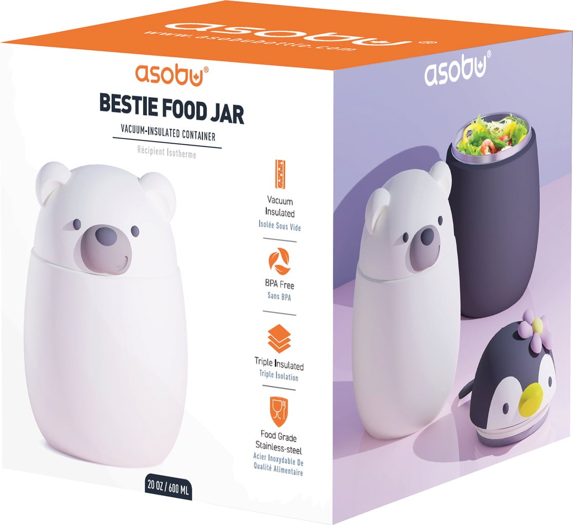 Este recipiente para alimentos compacto y de diseño atractivo mantiene la comida fresca o caliente incluso cuando estás fuera de casa. Gracias al aislamiento al vacío, conserva la temperatura de tu comida durante horas. La simpática tapa de silicona con forma de oso polar añade un toque alegre a tu rutina diaria y, además, hace que el recipiente tenga un aspecto atractivo. Fabricado en acero inoxidable duradero, con cierre hermético y práctica asa de transporte, es perfecto para la escuela, la oficina o las salidas. La superficie Soft Touch también ofrece un tacto agradable.