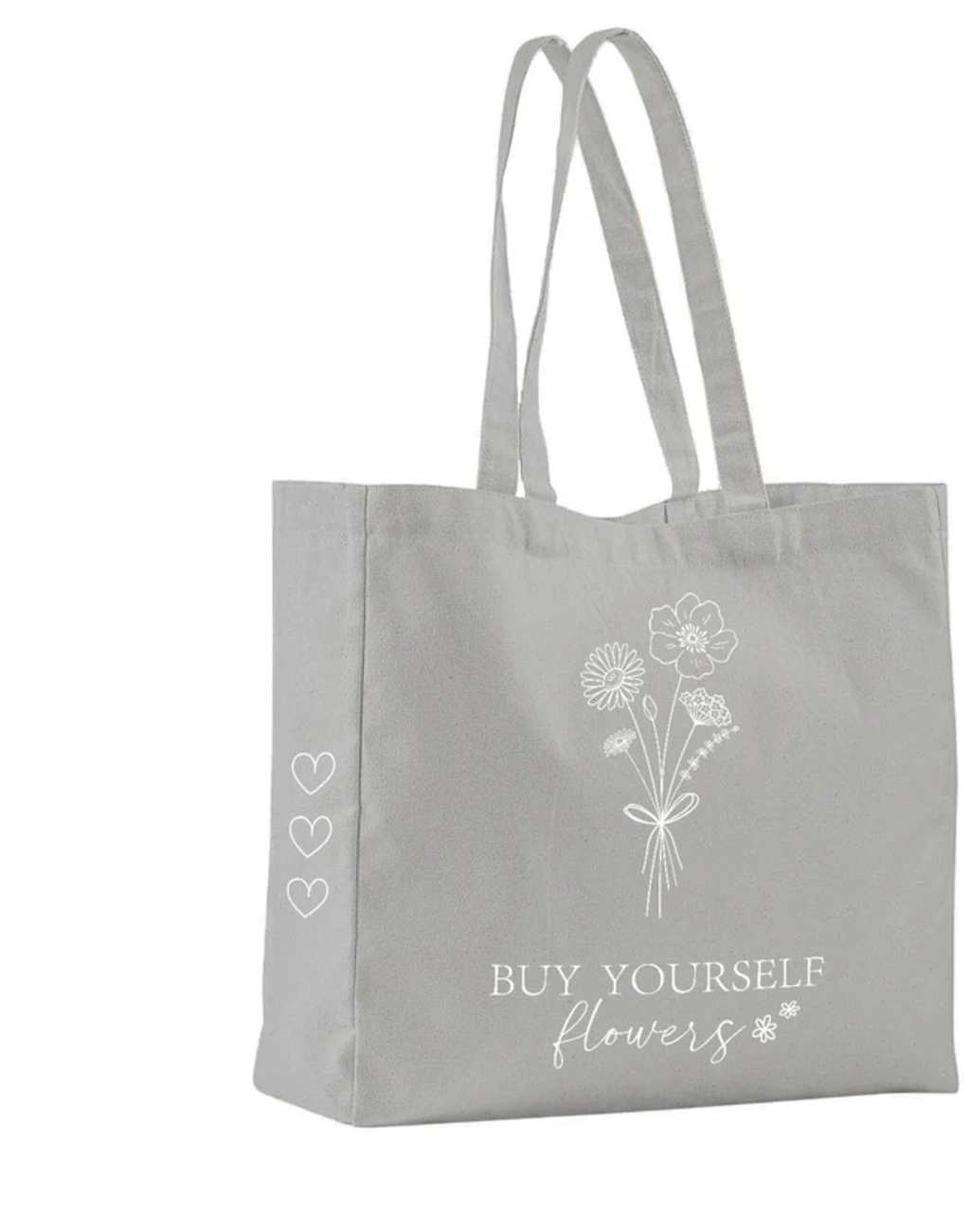 Olvídate del ramo de flores: ¡esta bolsa habla por sí sola! Fabricada en robusto algodón y provista de largas asas, está adornada con la inscripción "Cómprate flores". Un mensaje positivo para llevar contigo todos los días. Perfecta para el día a día, para un paseo al mercado o para pequeñas compras.