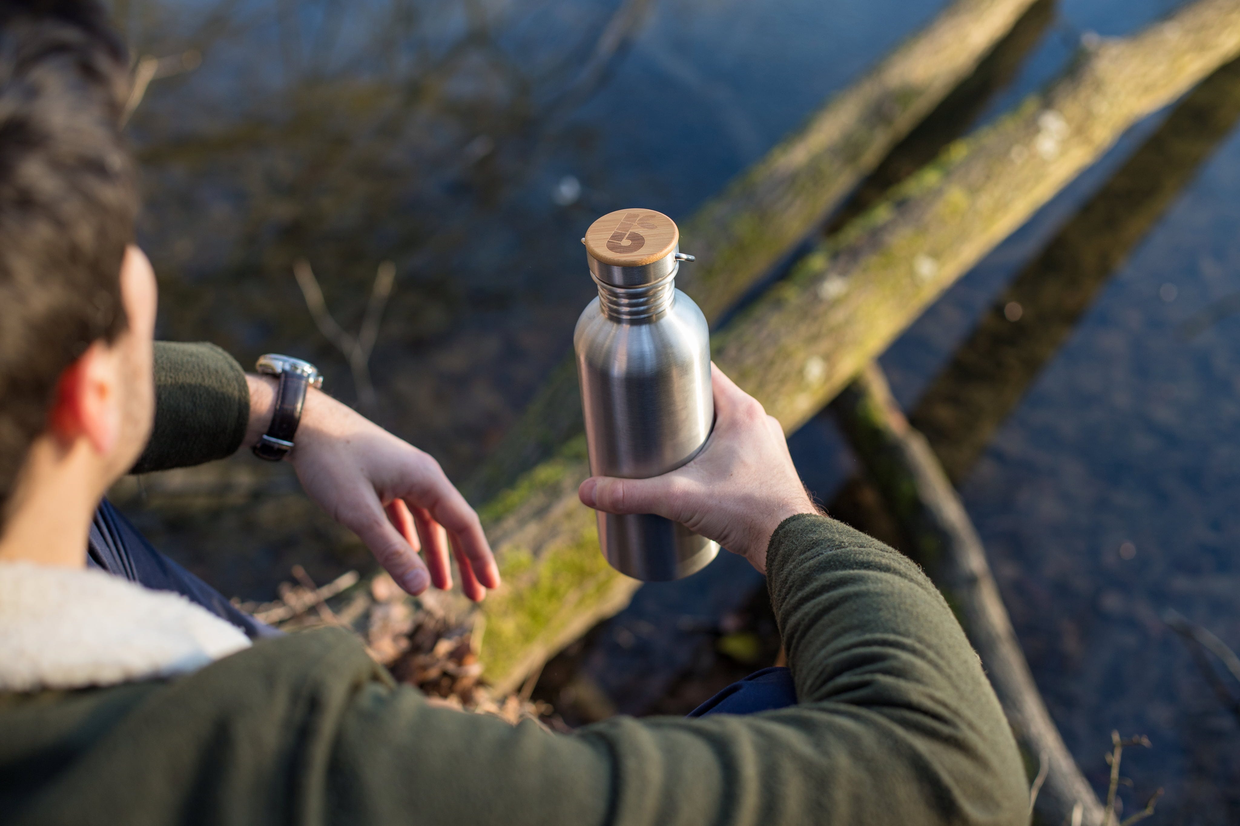 ¡Esta botella es la compañera perfecta para tu vida diaria! Ya sea para hacer deporte, en la oficina, en el colegio o para ir de excursión. Está fabricada en acero inoxidable, tiene un tapón de rosca de bambú a prueba de fugas y luce un diseño atemporal y sencillo. La botella no contiene sustancias químicas nocivas y puede limpiarse fácilmente con un cepillo para botellas después de usarla.