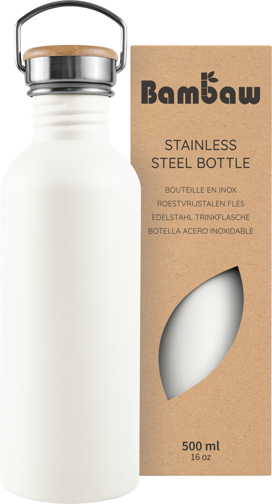 Bambaw Botella de Acero Inoxidable 500 ml, Polar White