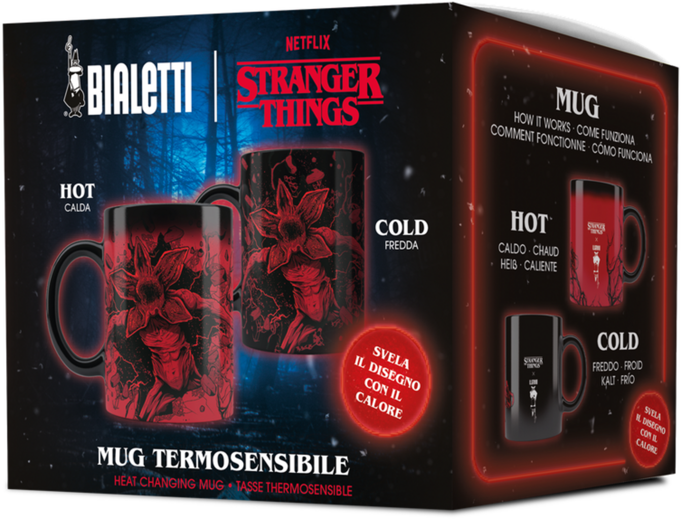 Con la colección "Stranger Things", preparar y beber café se convierte en una aventura especial. Además de los motivos fantásticos, todas las piezas presentan efectos sensibles al calor, cambiando su diseño cuando se llenan de líquido caliente o brillando en rojo en la oscuridad. Una pieza imprescindible para todos los fans de la serie de culto "Stranger Things" y, por supuesto, un regalo maravilloso.