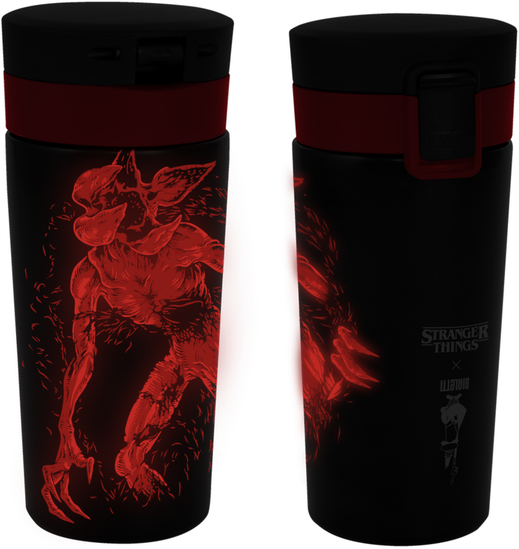 ¡Lleva siempre contigo tu bebida favorita y siente la presencia del Upside Down a tu lado! El Demogorgon de 'Stranger Things' brilla en la oscuridad gracias al efecto luminiscente, convirtiendo cada sorbo en una experiencia única.