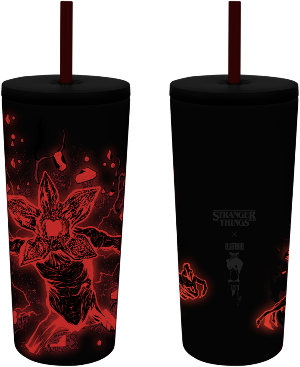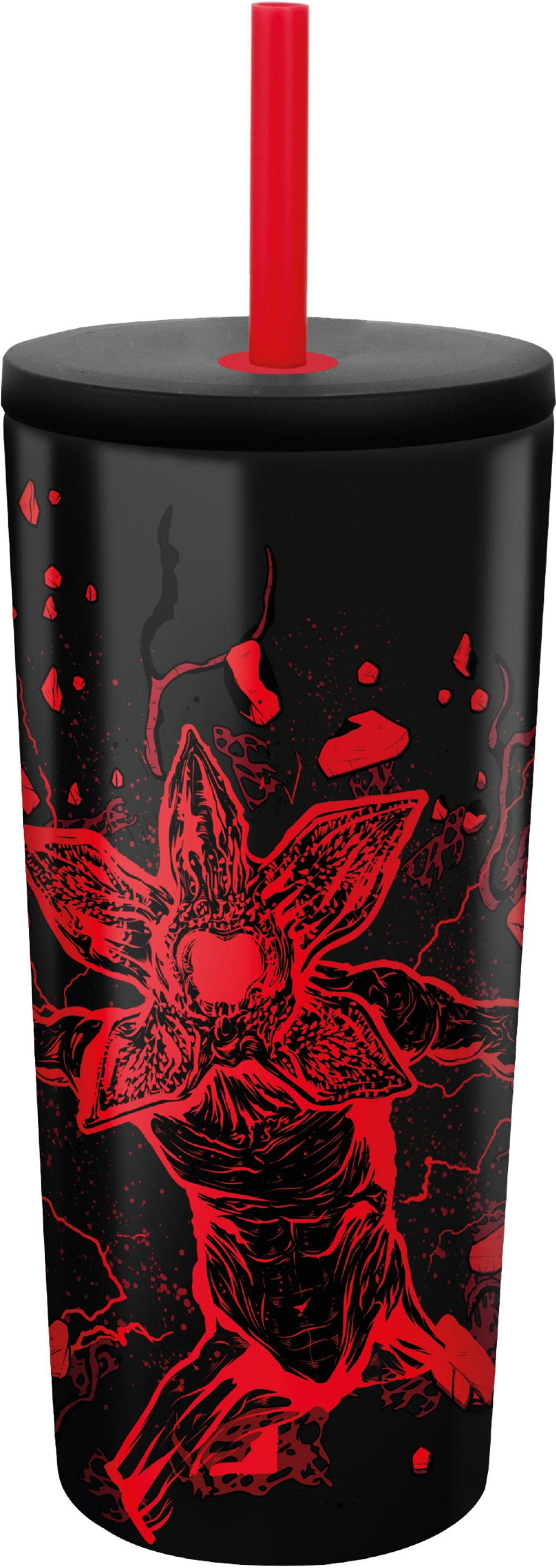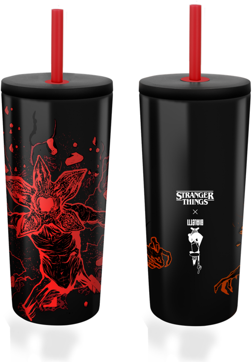 Los gráficos de diseño exclusivo con el look de 'Stranger Things' hacen que esta nevera sea realmente única. La pajita de silicona te permite beber cómodamente tu bebida favorita. La particularidad es que en la oscuridad el Demogorgon brilla en rojo, ¡para que el Inframundo no se te vaya de las manos!