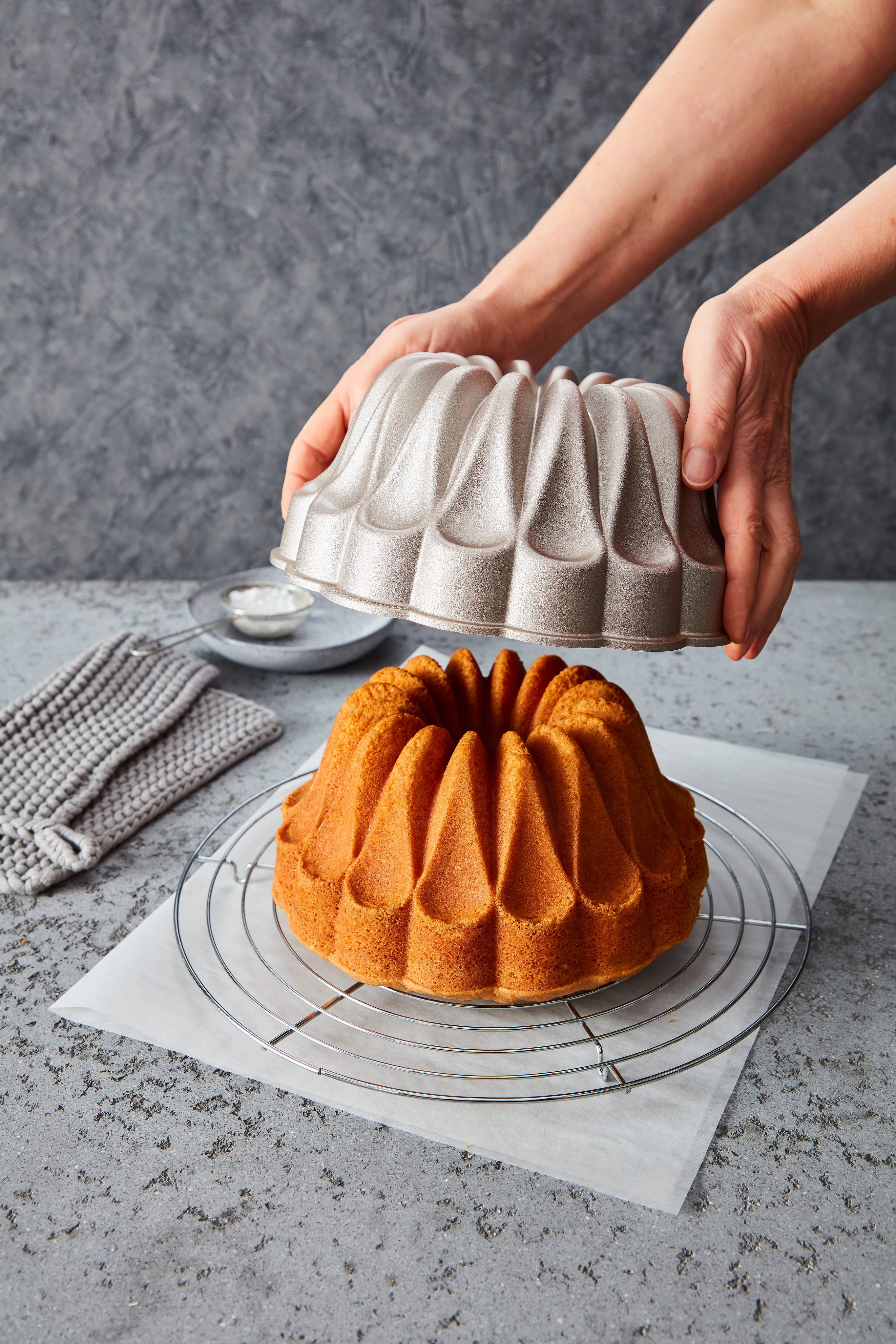 Te encantará la facilidad con la que se desmolda el pastel gracias al revestimiento antiadherente especial, que permite conservar intactas las elegantes ranuras y los detalles del molde. Robusto y fiable, este molde resiste hasta 230 °C y es fácil de limpiar después de su uso, para que puedas dedicarte con placer a tus invitados y al momento de la degustación.