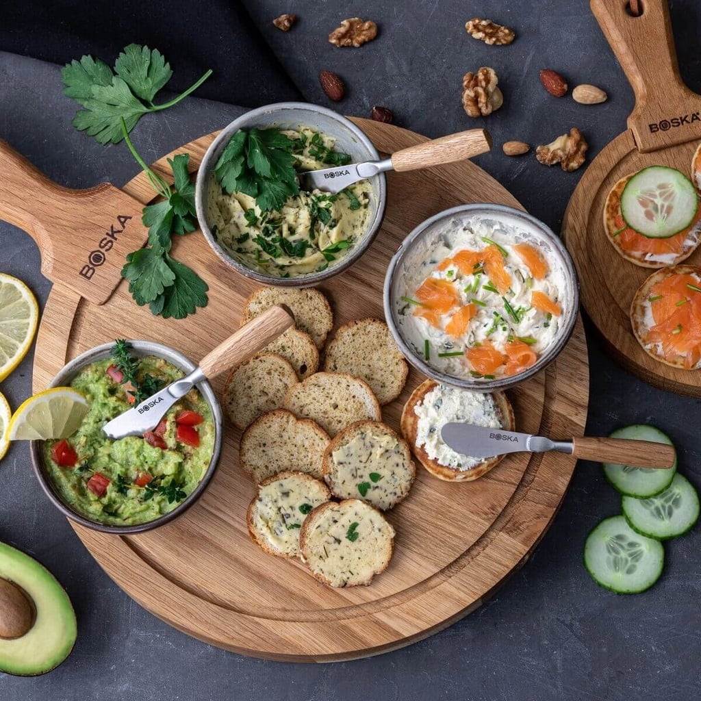 Con los prácticos mini cuchillos Oslo de Boska, cada desayuno se convierte en un momento de placer. Gracias al mango ergonómico de madera, estos cuchillos son especialmente cómodos de sujetar y añaden un toque de estilo a tu mesa. Perfectos para mantequilla, cremas para untar y quesos blandos, sus finas hojas te permiten untar uniformemente directamente sobre el pan. Ideales para el desayuno, el brunch o la cena, ¡estos cuchillos son pequeños, elegantes y causan un gran impacto!
