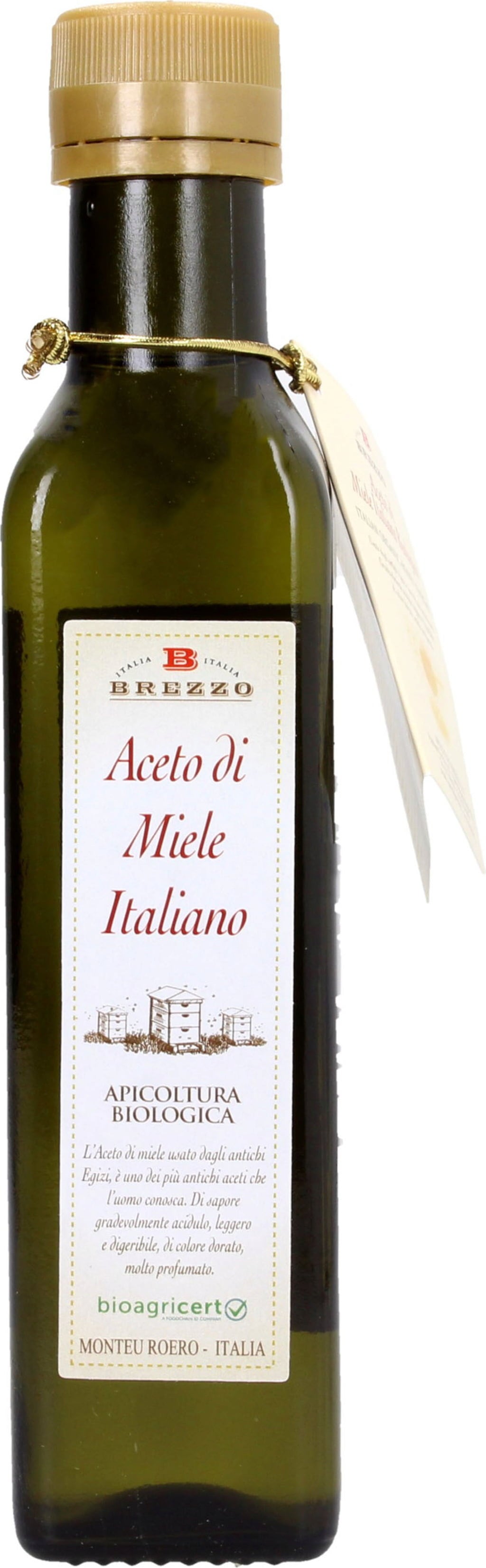 Según algunos hallazgos y documentos, el vinagre de miel ya era conocido y utilizado por los antiguos egipcios, mucho antes del descubrimiento de la vid. Producido exclusivamente con agua y miel orgánica, el vinagre de miel contiene numerosas enzimas y sales minerales y, gracias a su bajo grado de acidez, es menos agresivo para el estómago y más digerible que otros tipos de vinagre. El vinagre de miel se puede utilizar como vinagre de vino, por lo tanto es adecuado para aderezar ensaladas y verduras, pero también para cocinar carnes, pescados o platos fríos a base de arroz. Su sabor es delicado y ligeramente ácido con un regusto que recuerda a la miel.