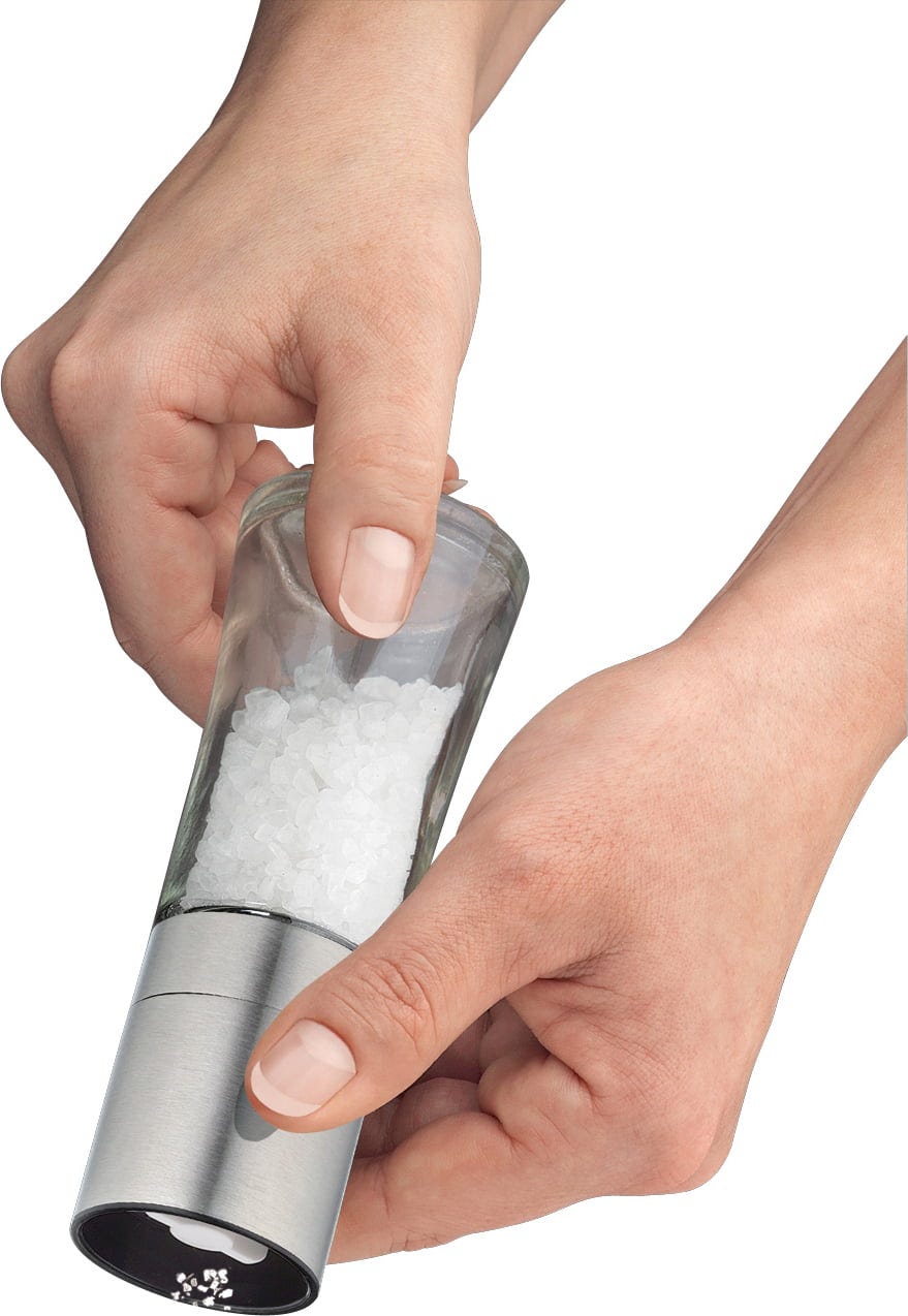 El molinillo de sal BARI de cilio está diseñado específicamente para moler sal marina gruesa o sal rosa con el tamaño de grano deseado. Con su moderna combinación de acero inoxidable y vidrio, no solo es un utensilio funcional, sino también un elegante accesorio para cualquier mesa.