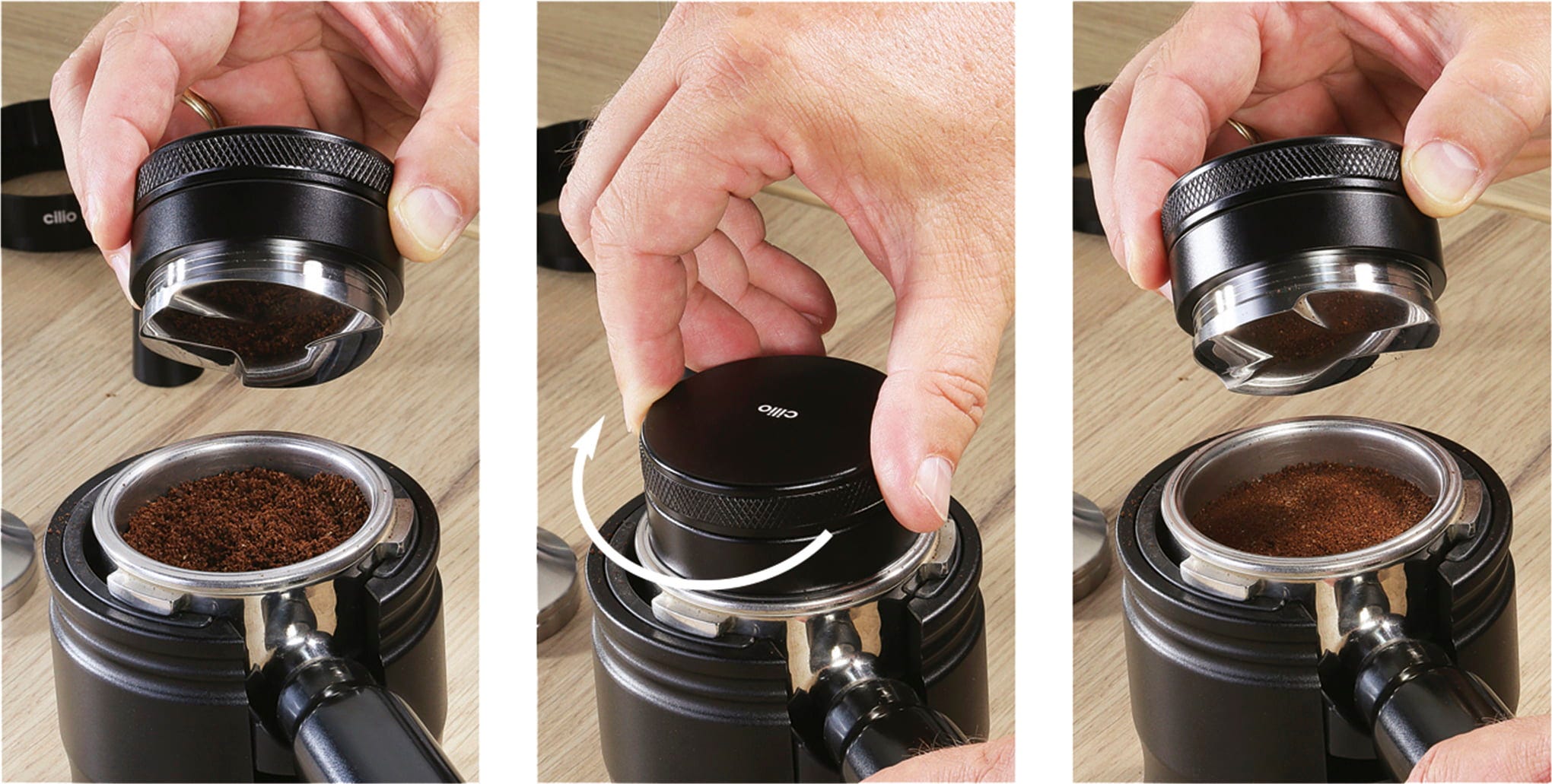 El nivelador BARISTA de cilio es la herramienta profesional para quienes desean sacar el máximo partido a su espresso. Garantiza una distribución perfectamente uniforme del café molido en el portafiltros, incluso antes de utilizar el prensador. Este paso es fundamental para una extracción homogénea y una crema impecable.