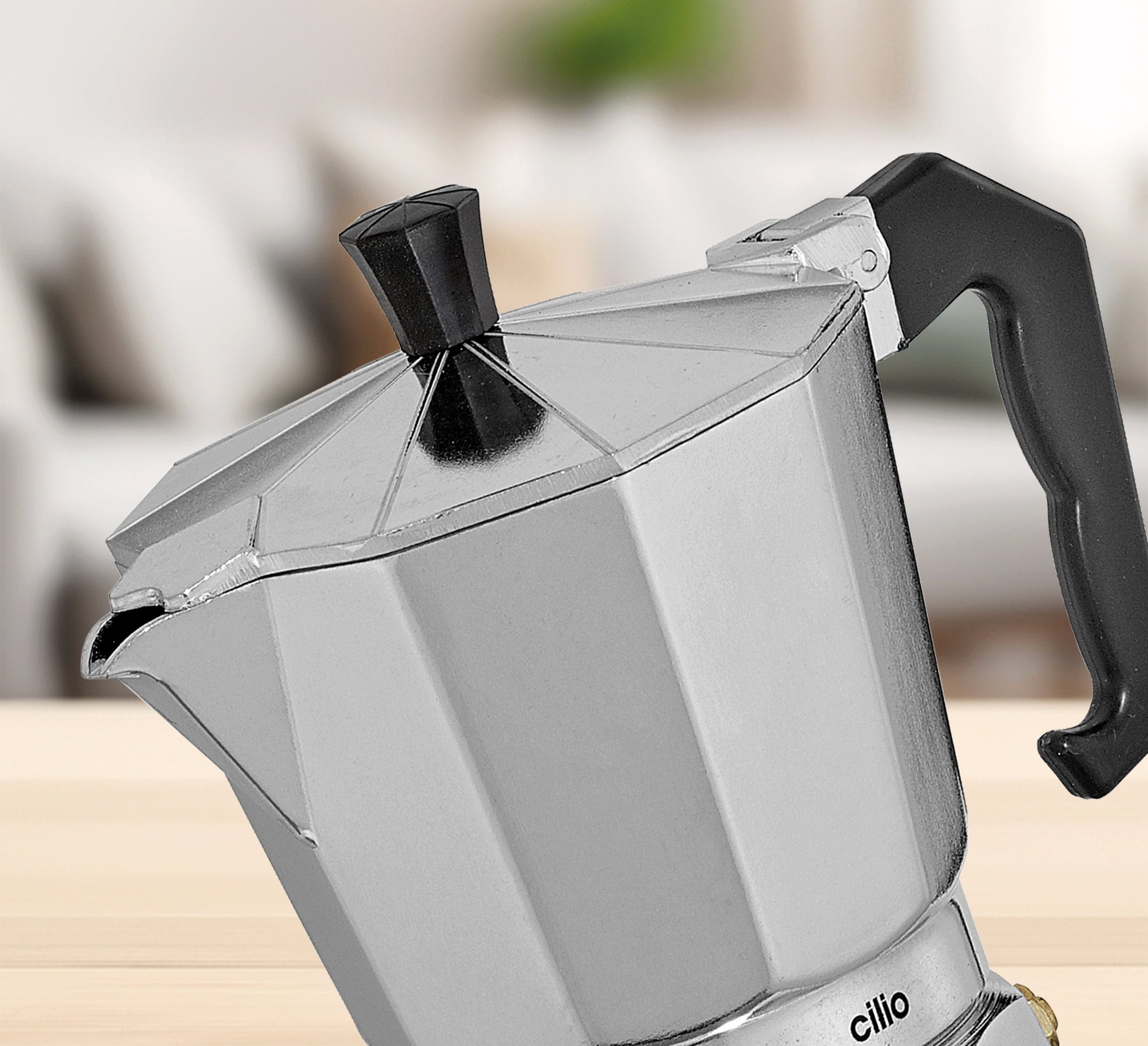 Disfruta del sabor del café preparado con la cafetera moka también en las modernas placas de inducción. La cafetera CLASSICO para inducción de cilio combina la estética tradicional de la moka con la tecnología de una base magnética. Mientras el agua se calienta rápidamente en el depósito de acero inoxidable, el aromático café sube a la parte superior de aluminio y libera todo su bouquet. El mango termoaislante garantiza un agarre seguro, para que puedas disfrutar cada día de tu pequeño ritual italiano con total tranquilidad.