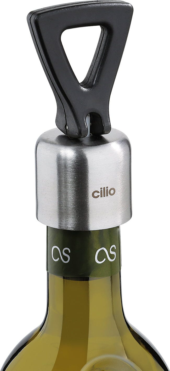 Prolonga el placer de tus vinos selectos con el elegante tapón para vino LEVA de cilio. La refinada combinación de acero inoxidable pulido y plástico negro hace que este accesorio sea un valor añadido estético para cualquier bar doméstico. Evita de forma fiable la oxidación del vino, permitiéndote apreciar sus delicados matices incluso después de varios días.