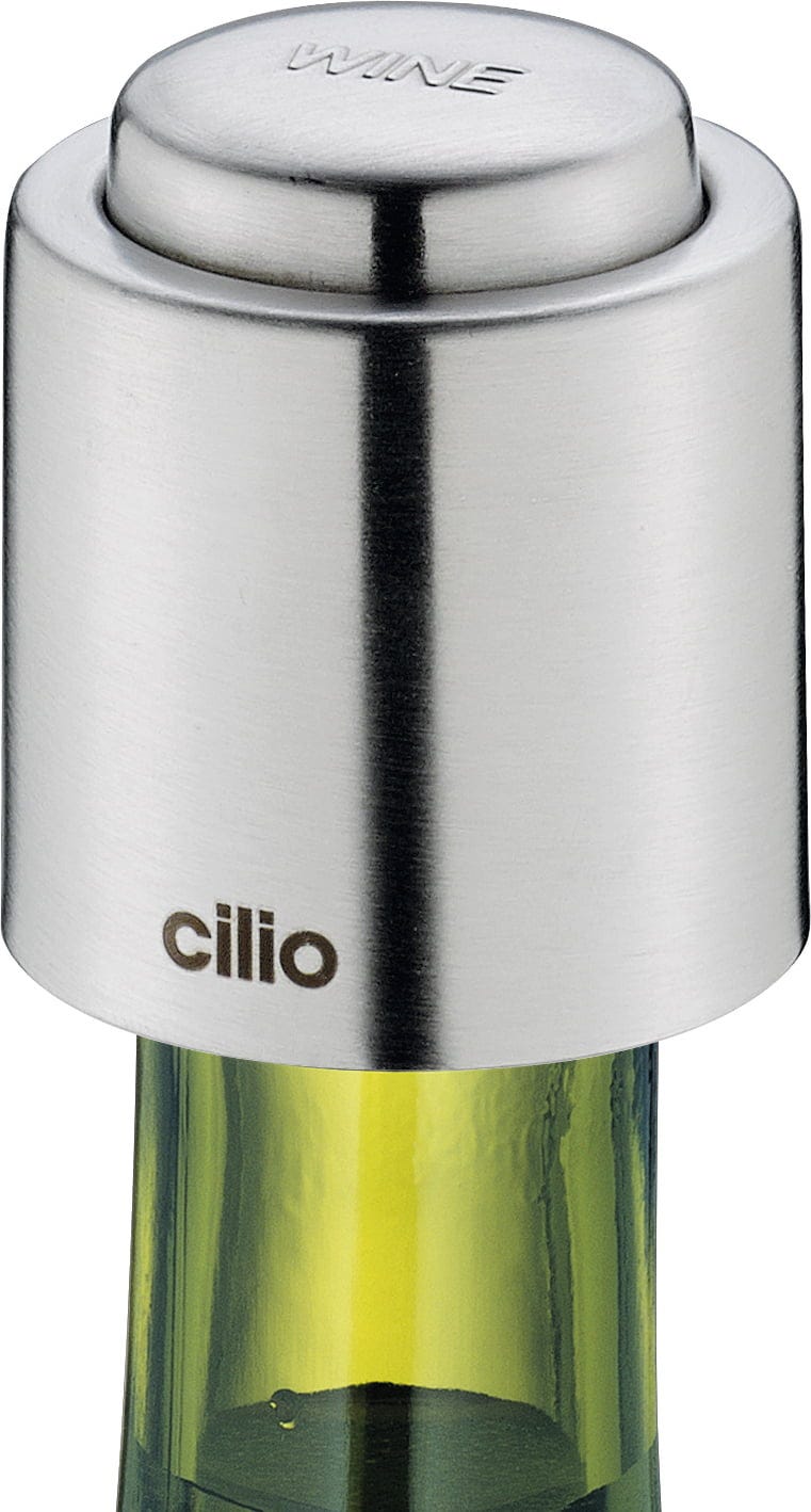 No renuncies a la calidad de tu vino favorito. Con el tapón para vino de acero inoxidable pulido de alta calidad de Cilio, conservarás la frescura de las botellas abiertas de forma elegante y fiable. La junta integrada se adhiere perfectamente al cuello de la botella, impidiendo la entrada de aire.