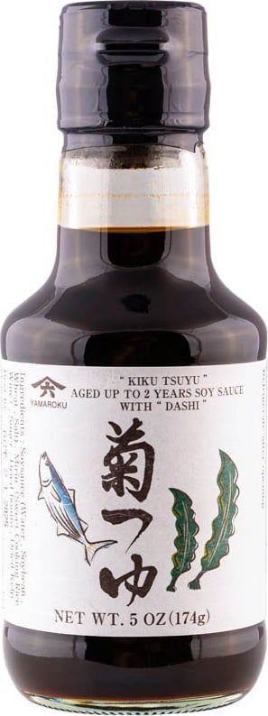 El Tsuyu de Yamaroku combina salsa de soja sazonada con mirin, bonito y kombu. Es una salsa perfecta como base para caldos, salsas para mojar o sopas frías de fideos. Dos años de maduración en barriles de madera garantizan un sabor especialmente equilibrado.