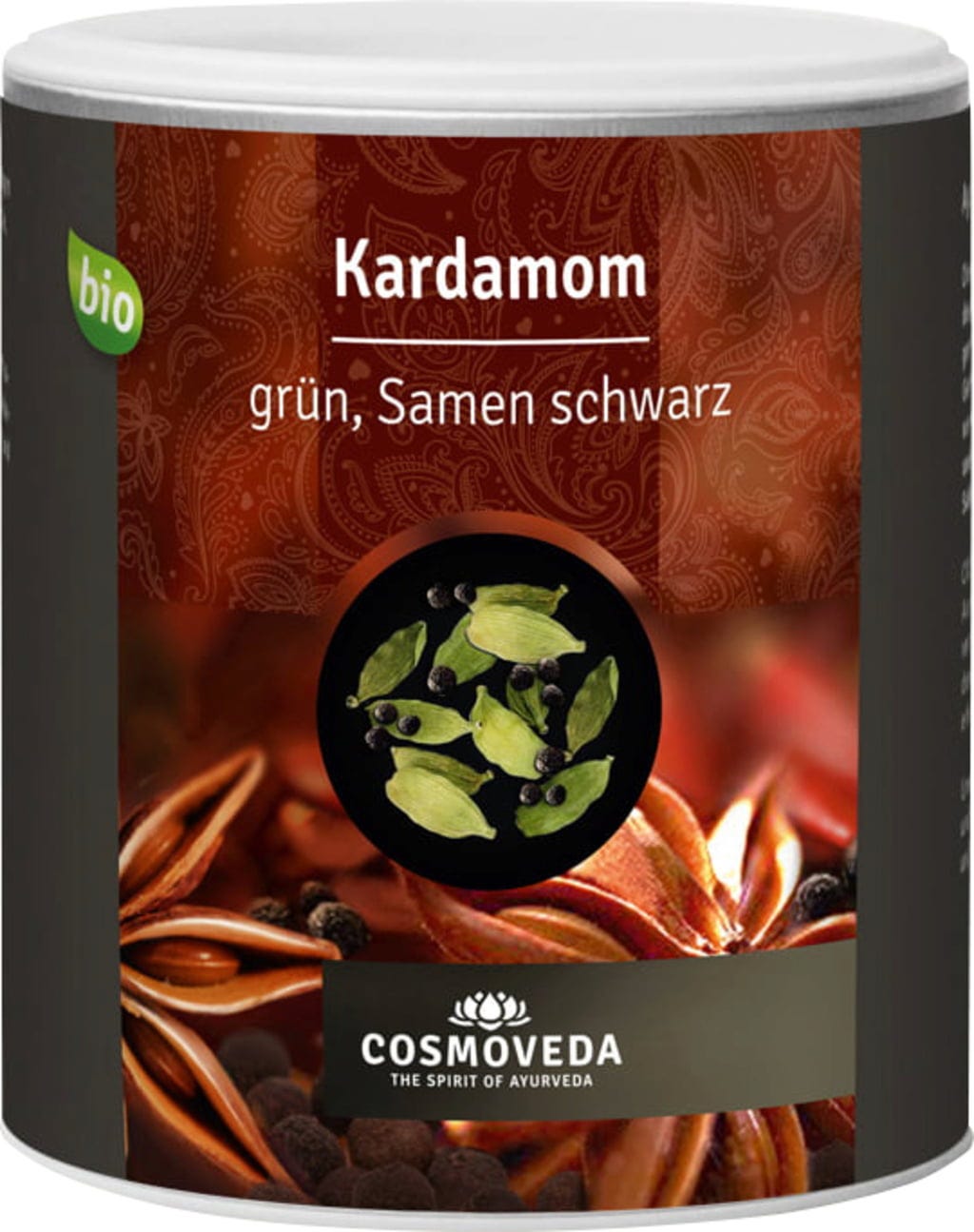 Las semillas negras del cardamomo verde se utilizan molidas para postres, refinar bebidas, leche y café. Las semillas promueven la digestión. El cardamomo es una de las especias más antiguas y valiosas del mundo, justo después del azafrán y la vainilla. Incluso los antiguos griegos y romanos conocían esta especia. La especia proviene del sur de la India, pero hoy también se encuentra en Sri Lanka, Guatemala, Tanzania y Brasil.