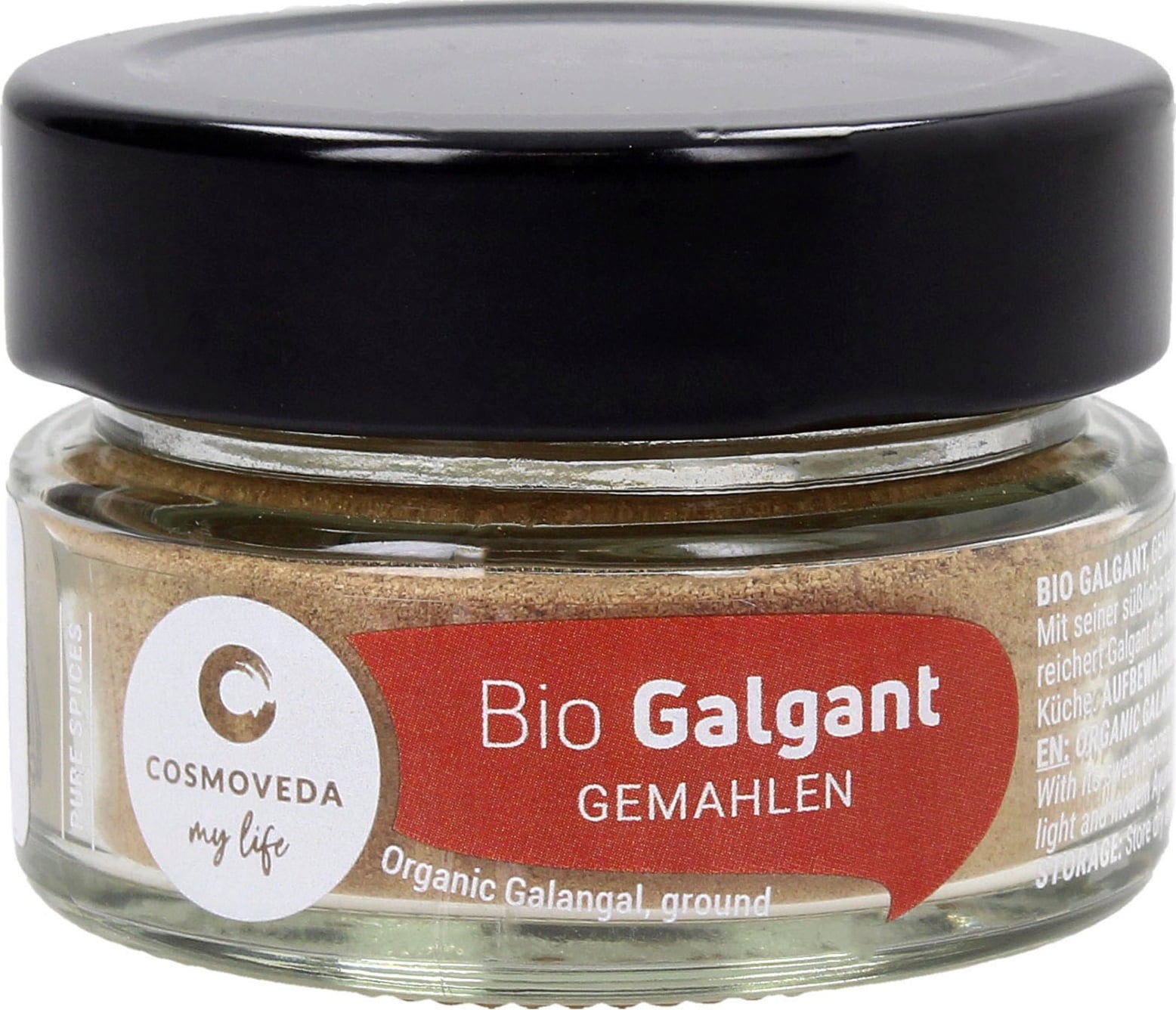 La galanga pertenece a la familia botánica del jengibre, y es originaria del sudeste asiático que se utiliza con frecuencia para caldos, sopas, curry y platos con coco. Es más suave que el jengibre, pero más aromático.