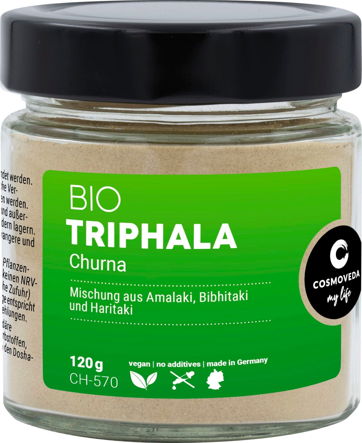 Triphala es una mezcla de amla (Phyllanthus emblica), bibhitaki (Terminalia bellirica) y haritaki (Terminalia chebula). Para la producción de este polvo se ha tenido en cuenta una producción suave (por debajo de 40° C). Esta mezcla viene de plantas de cultivos ecológicos y de comercio justo de la India y Sri Lanka.