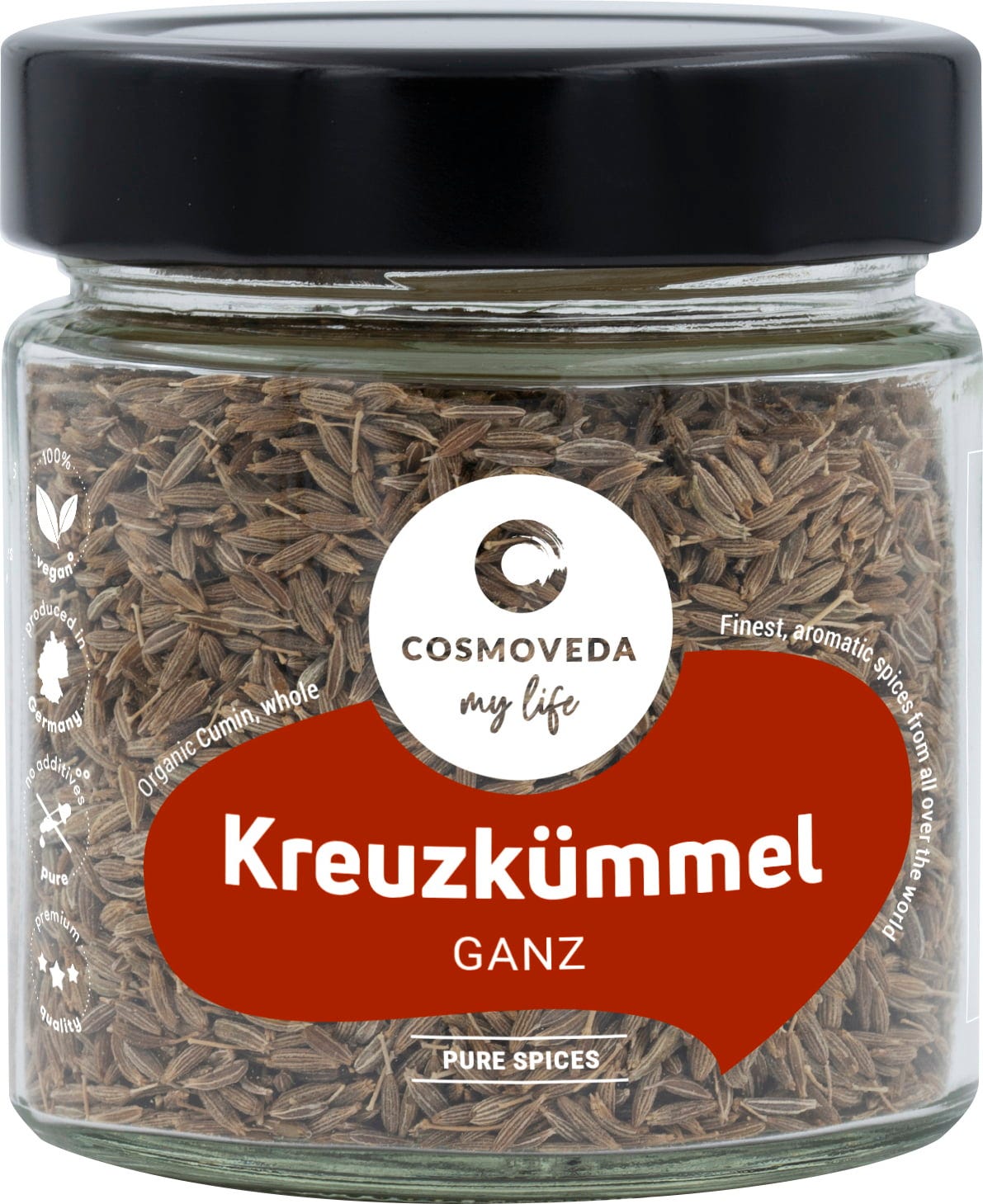 El comino es muy usado para condimentar especialmente platos de la cocina ayurvédica e india con su sabor típico. Es versátil y se puede utilizar en currys en polvo, bebidas, yogur, ensaladas (raitas) y encurtidos. Comino entero.