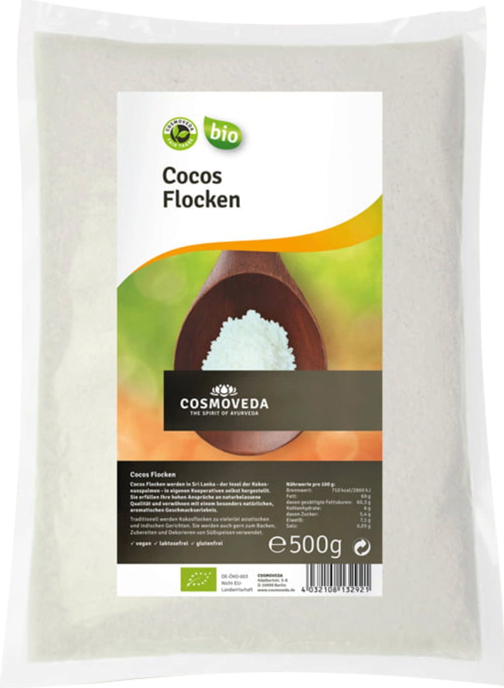Los copos de coco de COSMOVEDA están hechos de cocos de Ceilán frescos y a menudo se usan como refrigerio, para cocinar y hornear debido a su deliciosa fragancia y al seductor sabor a coco.