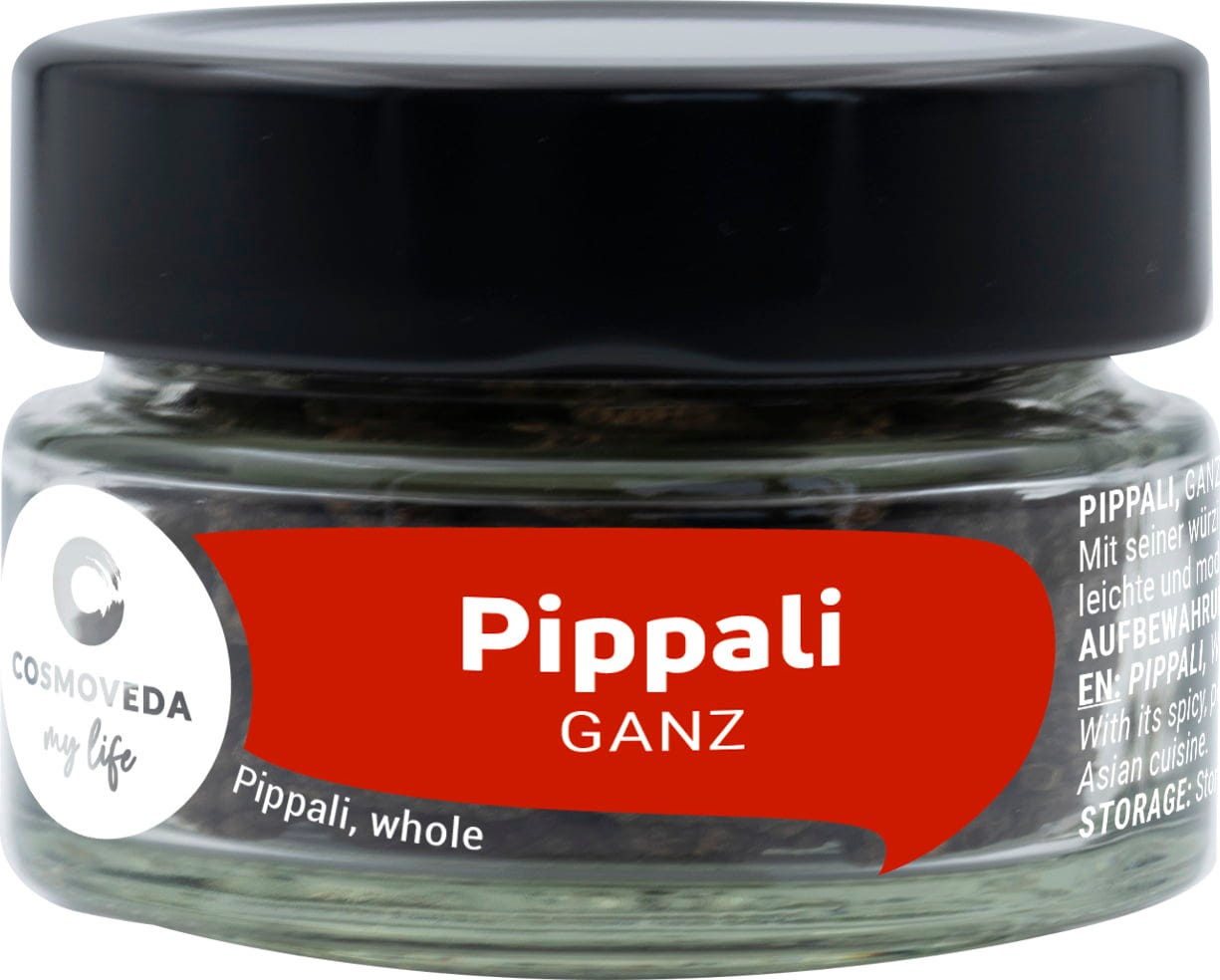 La pimienta larga (Pippali) se puede usar como pimienta negra, pero su sabor es relativamente especiado y picante. Su sabor es parecido a una mezcla de pimienta blanca, nuez moscada, clavo y cardamomo.