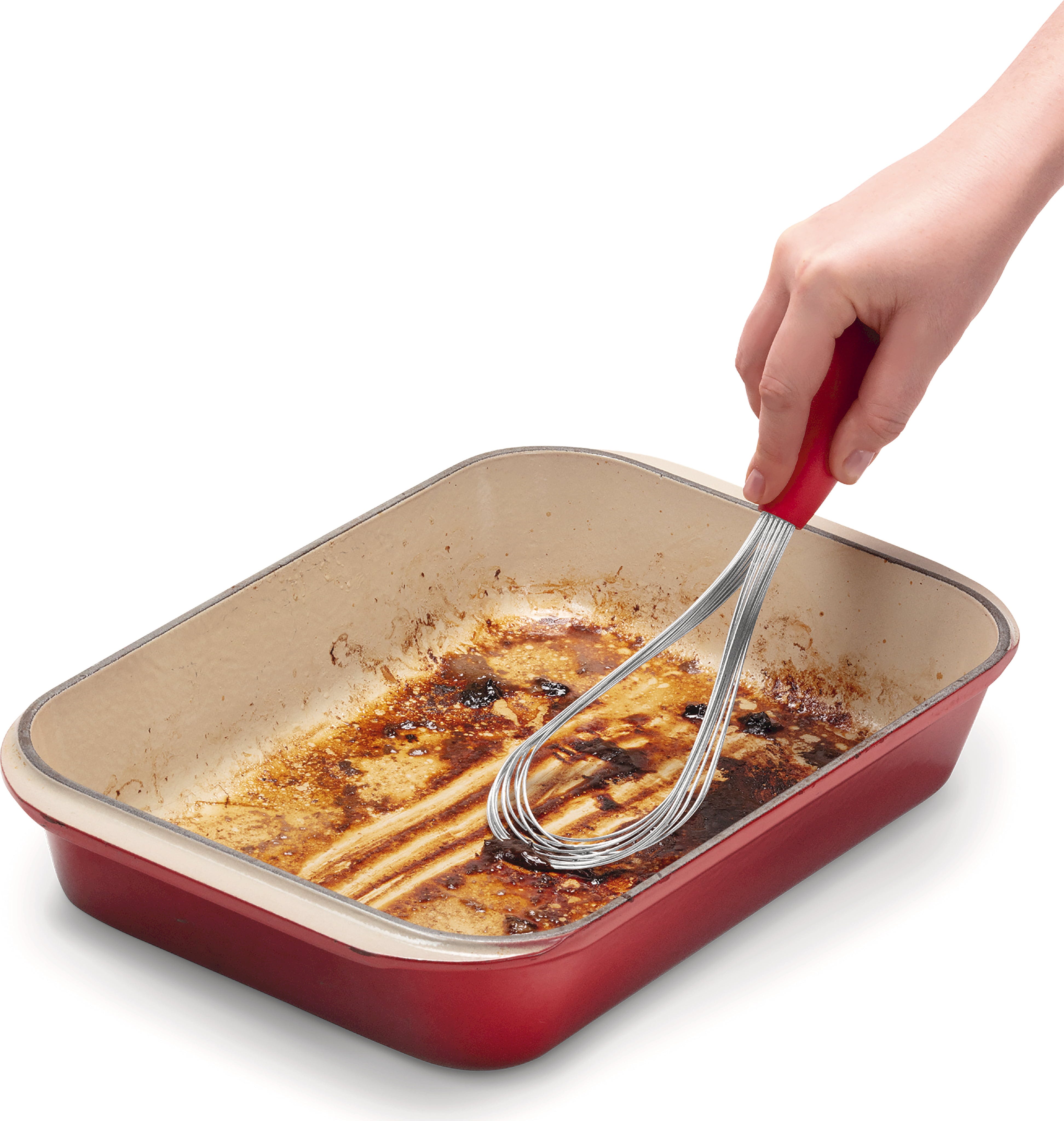 El batidor Flisk de Dreamfarm es un innovador batidor que se transforma en tres formas diferentes con un simple giro del mango. En la configuración de globo, es perfecto para montar nata de forma suave, mientras que la posición más plana es ideal para salsas, reducciones y preparaciones en sartenes bajas. Después de su uso, se puede plegar completamente hasta quedar plana, ocupando muy poco espacio en el cajón de los cubiertos y evitando que se enganche con otros utensilios.