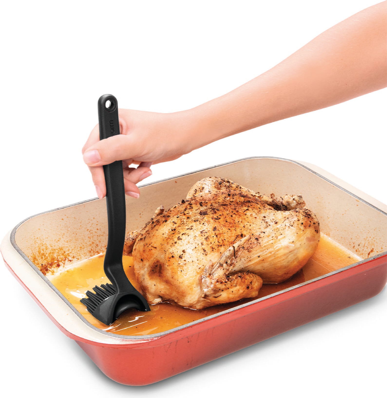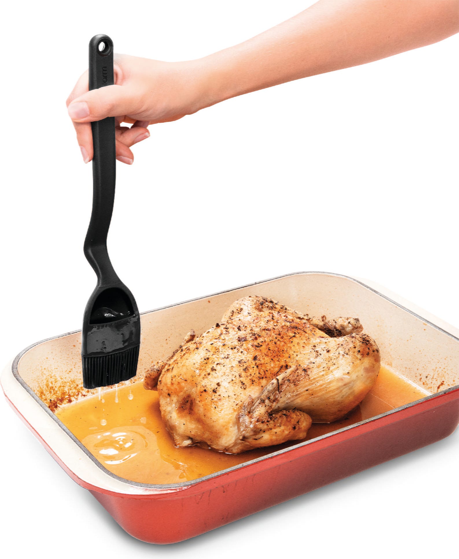 En el interior del cabezal, cuatro aberturas regulan la salida uniforme del líquido, mientras que 100 cerdas de silicona muy finas garantizan un resultado limpio y uniforme. El pincel resiste temperaturas de hasta 260 °C, es higiénico y se puede lavar fácilmente en el lavavajillas después de su uso.