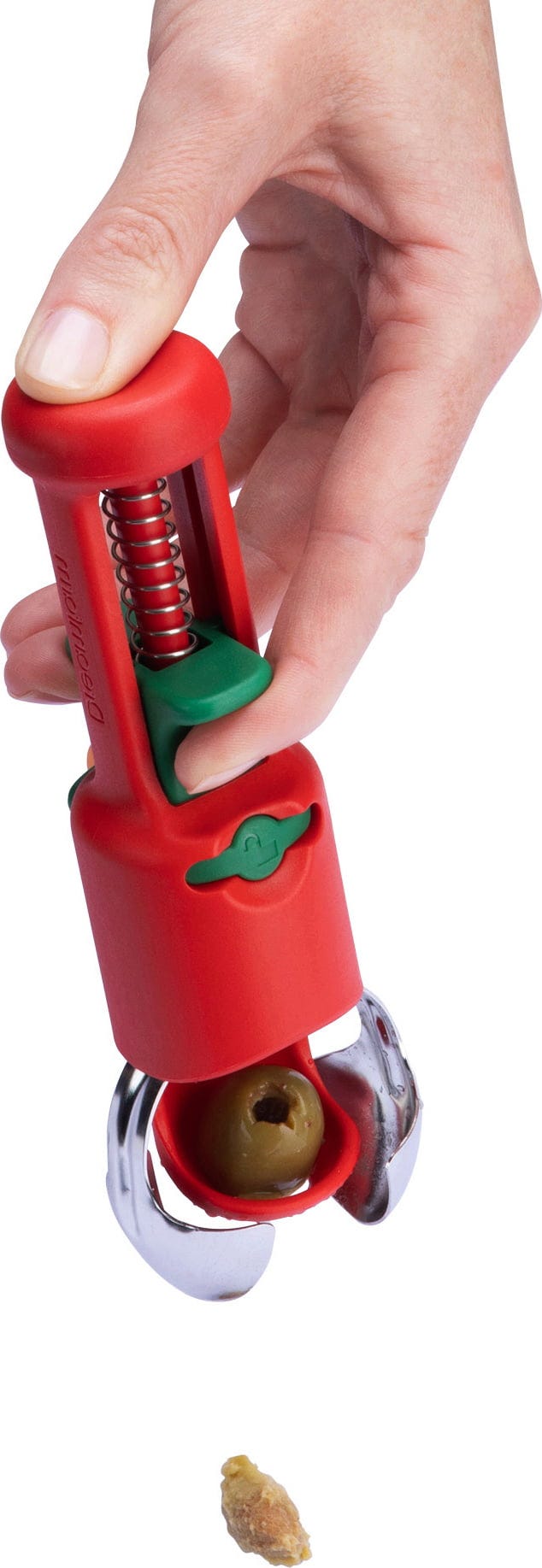 Con Hullapit de Dreamfarm tendrás en tu cocina un ingenioso deshuesador 3 en 1 que te permitirá eliminar fácilmente el tallo de las fresas y deshuesar rápidamente cerezas u olivas. Gracias a las precisas cuchillas cónicas de acero inoxidable, también puedes eliminar limpiamente las partes estropeadas de la fruta, mientras que el pistón con resorte conduce los huesos directamente a la cámara de recogida integrada.