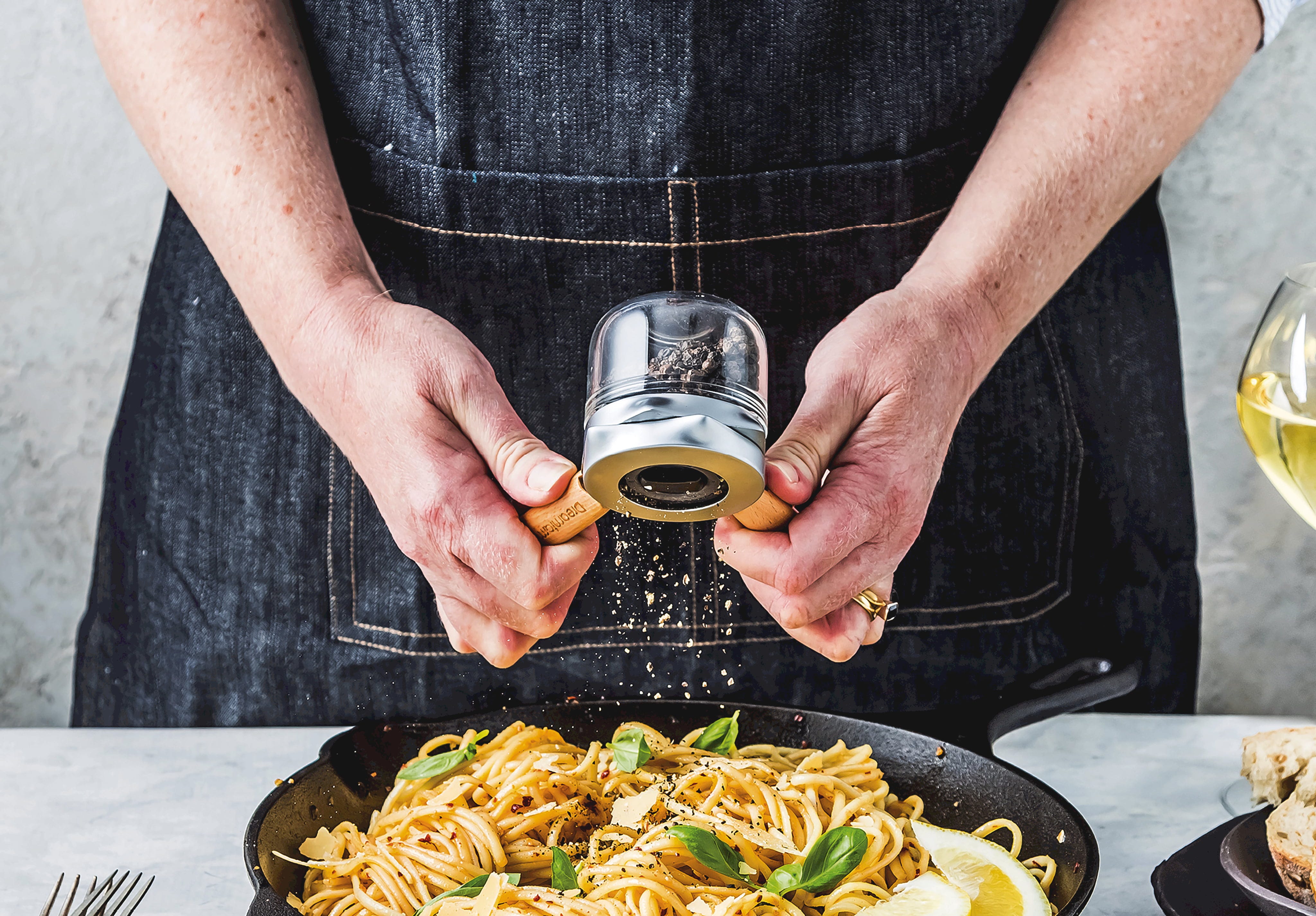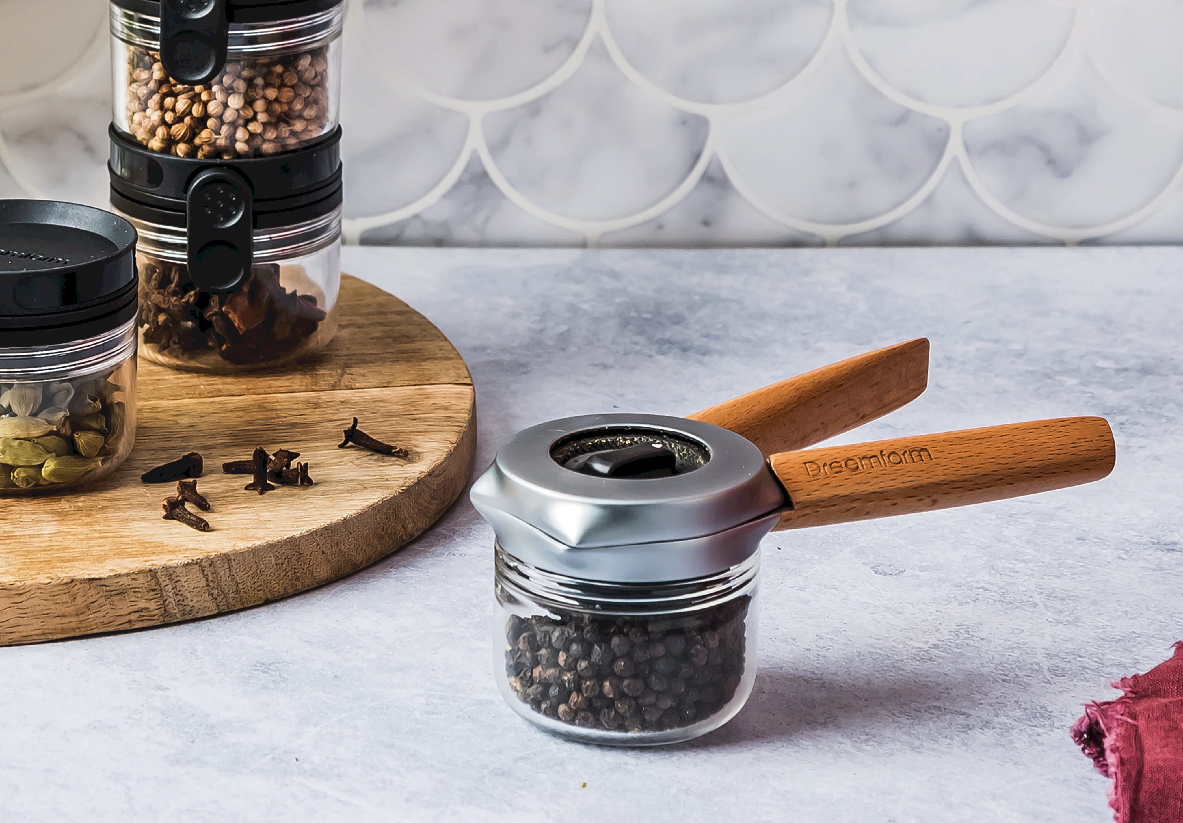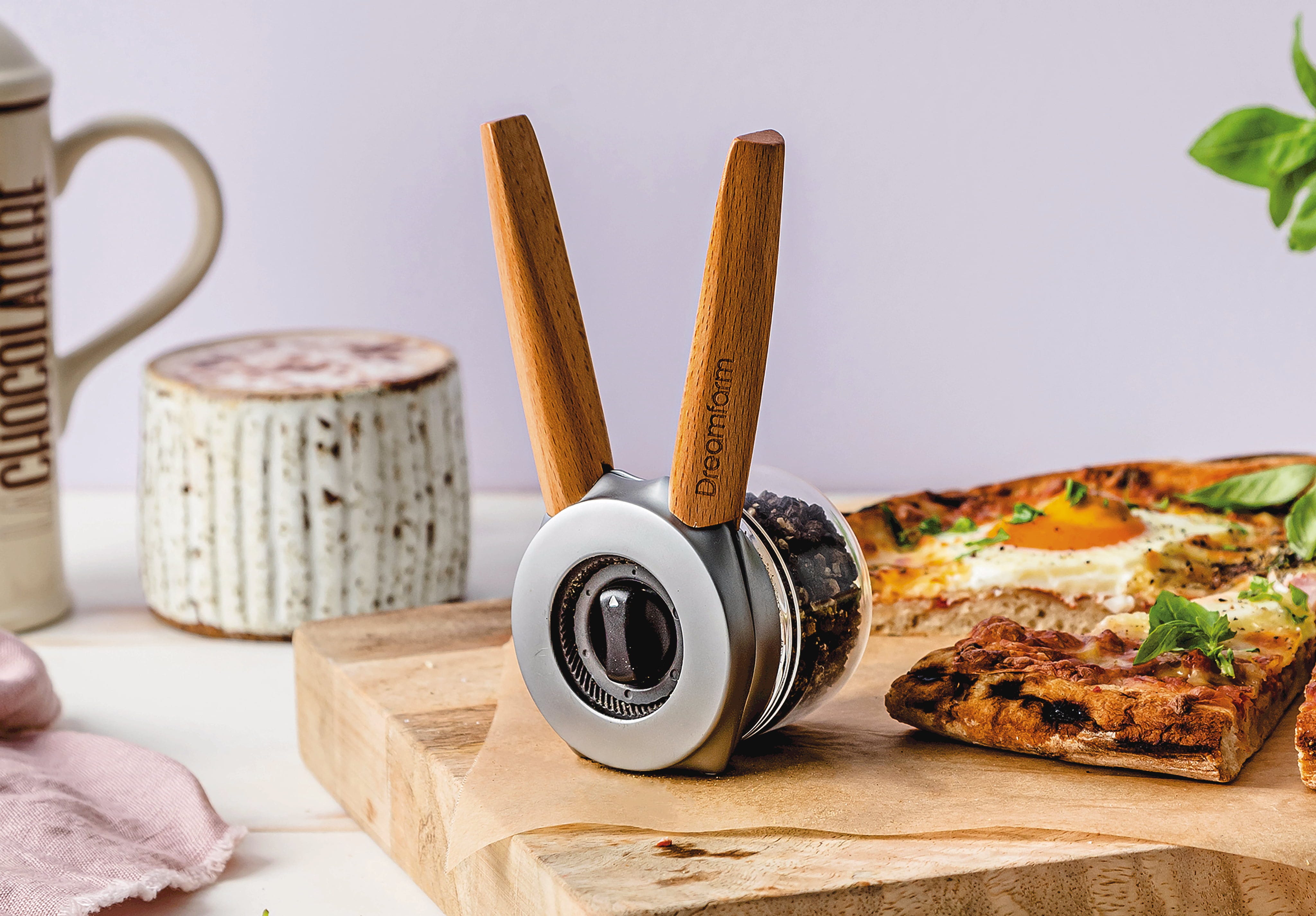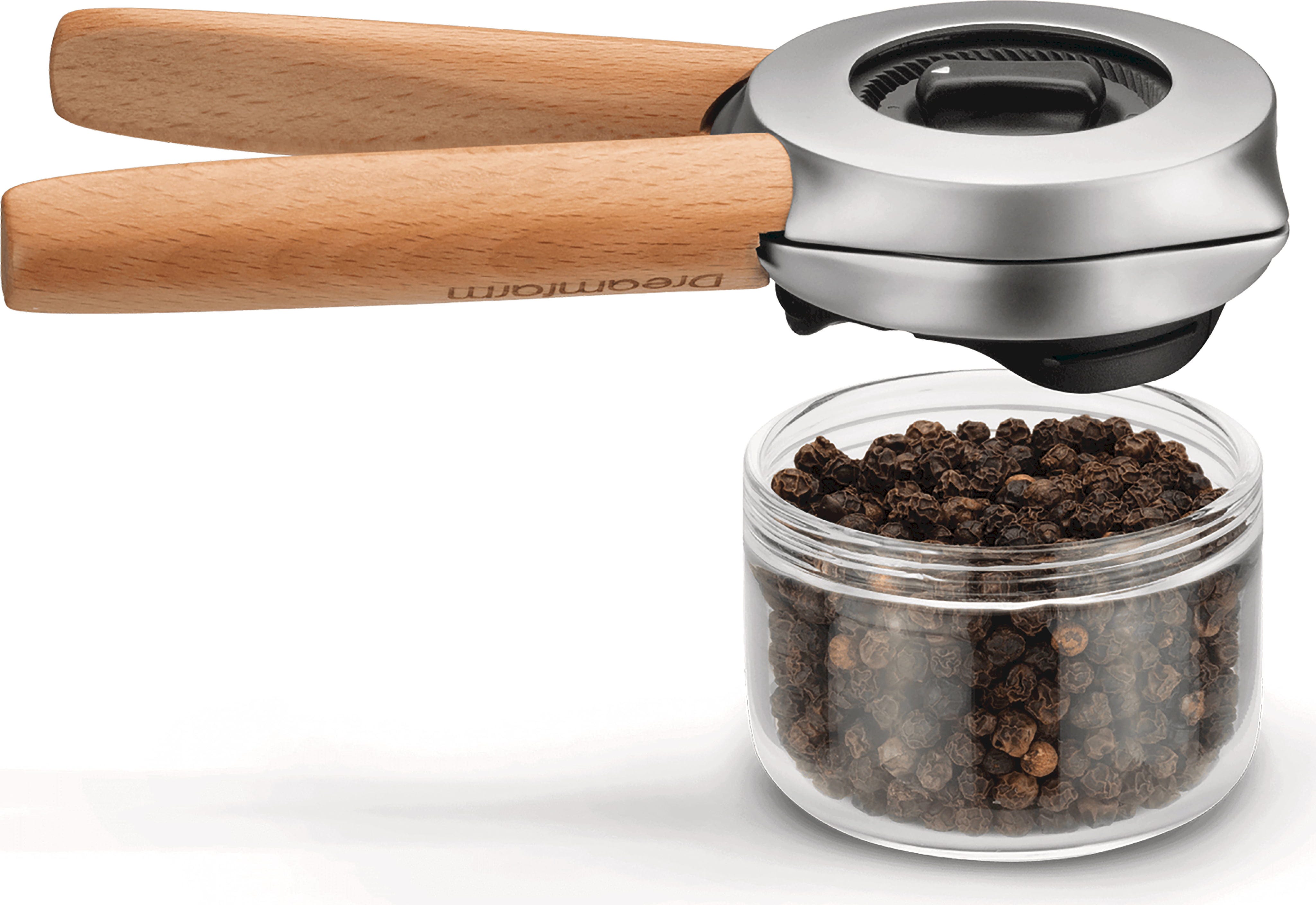 El molinillo Ortwo de Dreamfarm es el primer molinillo del mundo que combina la practicidad de su uso con una sola mano con la velocidad de molienda con las dos manos. Al apretar las asas, puedes moler rápidamente las especias con una sola mano, mientras que al utilizarlo con ambas manos obtienes una mayor cantidad de especias en menos tiempo.