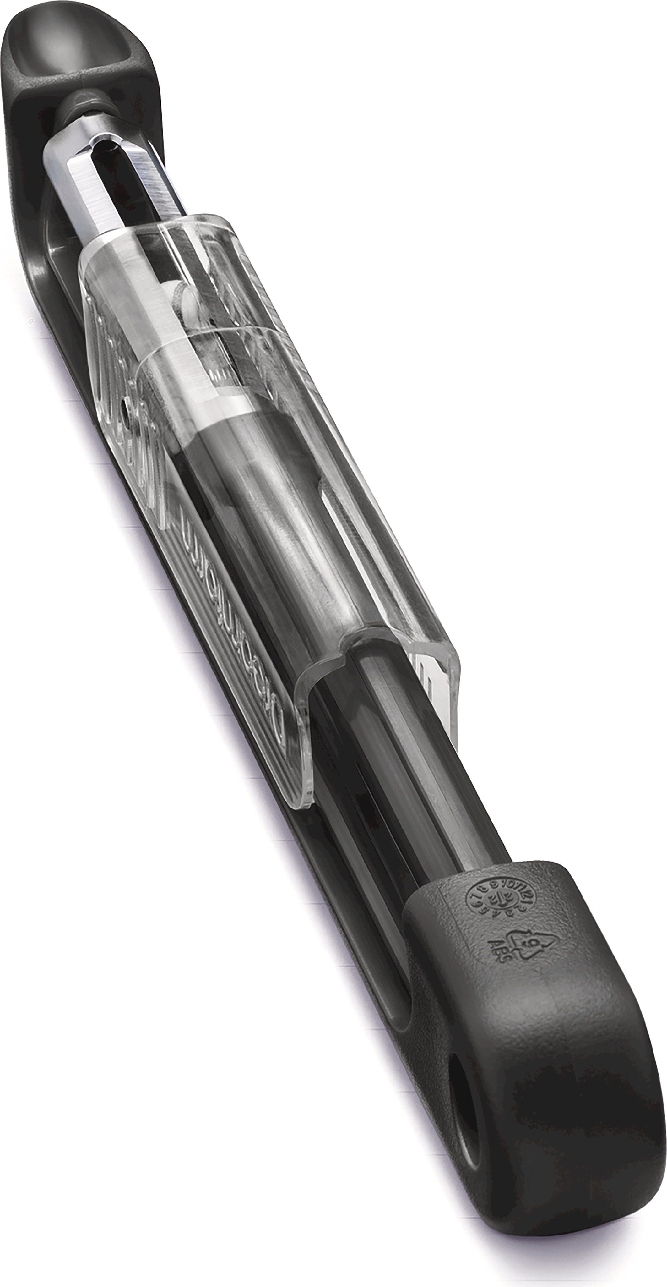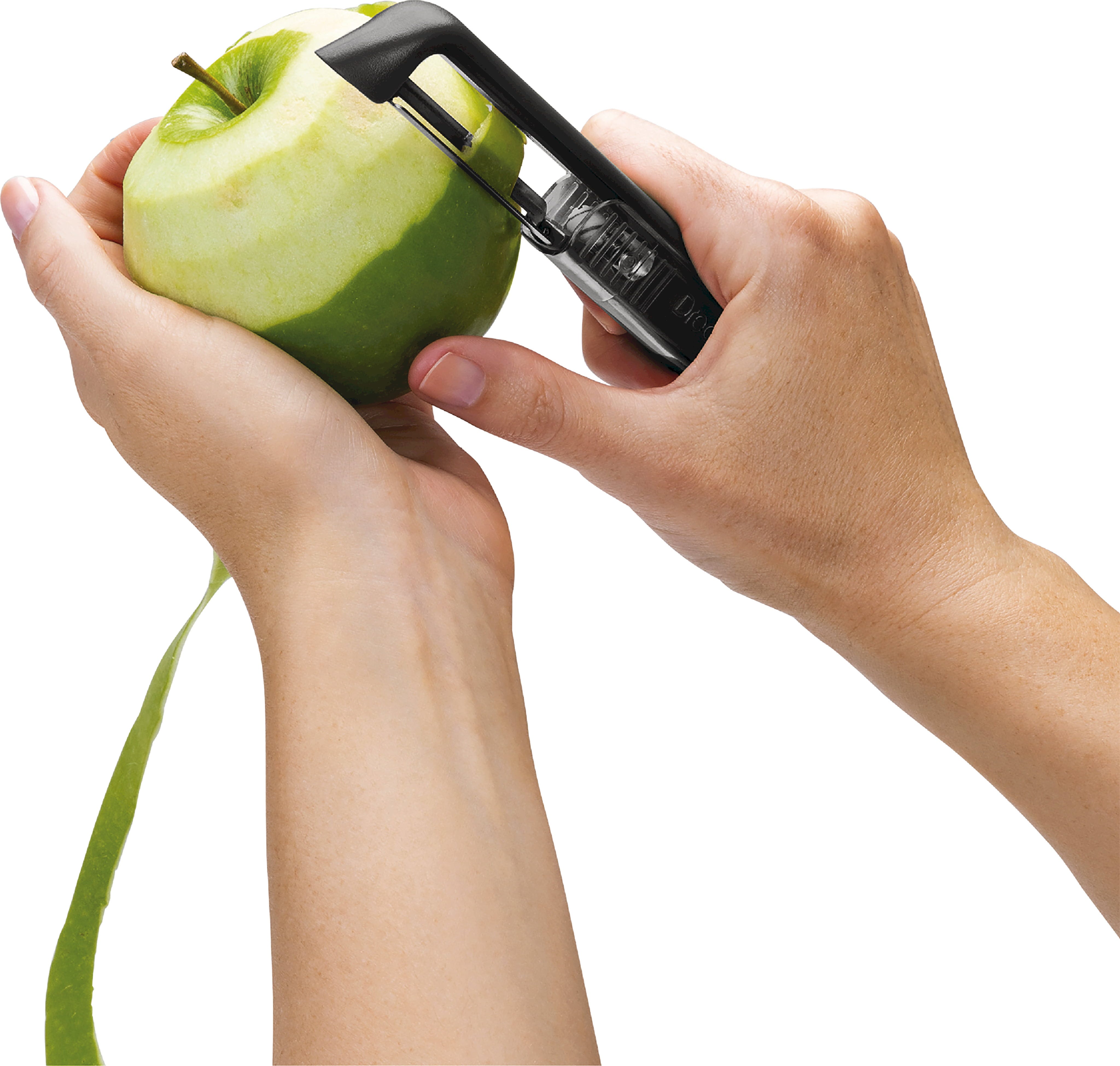 El pelador Sharple de Dreamfarm está equipado con una cuchilla de acero inoxidable japonés extremadamente afilada que, gracias al soporte oscilante, reduce al mínimo los residuos. Su verdadero punto fuerte es la innovadora cubierta de seguridad: cada vez que abres o cierras la protección, una bola afiladora de cerámica integrada vuelve a afilar automáticamente la cuchilla. De este modo, se desliza sin esfuerzo sobre la piel de las frutas y verduras cada vez que se utiliza, mientras que el pelador integrado elimina en un instante las partes no deseadas de las patatas. Adecuado tanto para diestros como para zurdos, este utensilio ergonómico se adapta perfectamente a la mano y, después de su uso, se puede lavar cómodamente en el lavavajillas.