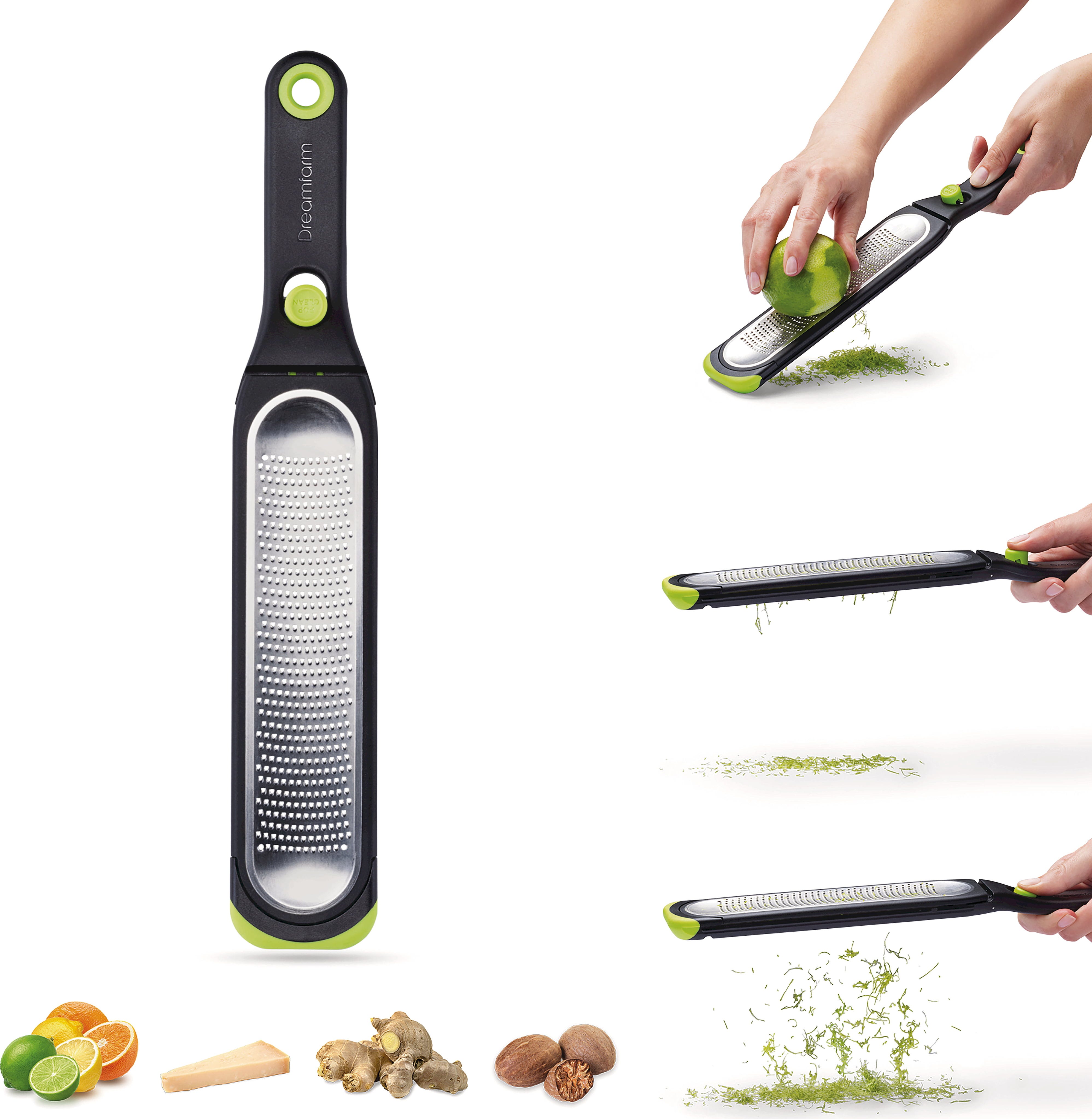 ¡Da el toque final a tus platos en un instante con ralladuras muy finas, sin que queden restos valiosos pegados al rallador! El rallador Ozest Fine de Dreamfarm conquista con sus 441 dientes grabados, extremadamente afilados, y con su forma cóncava que conduce los ingredientes de forma segura hacia el centro.