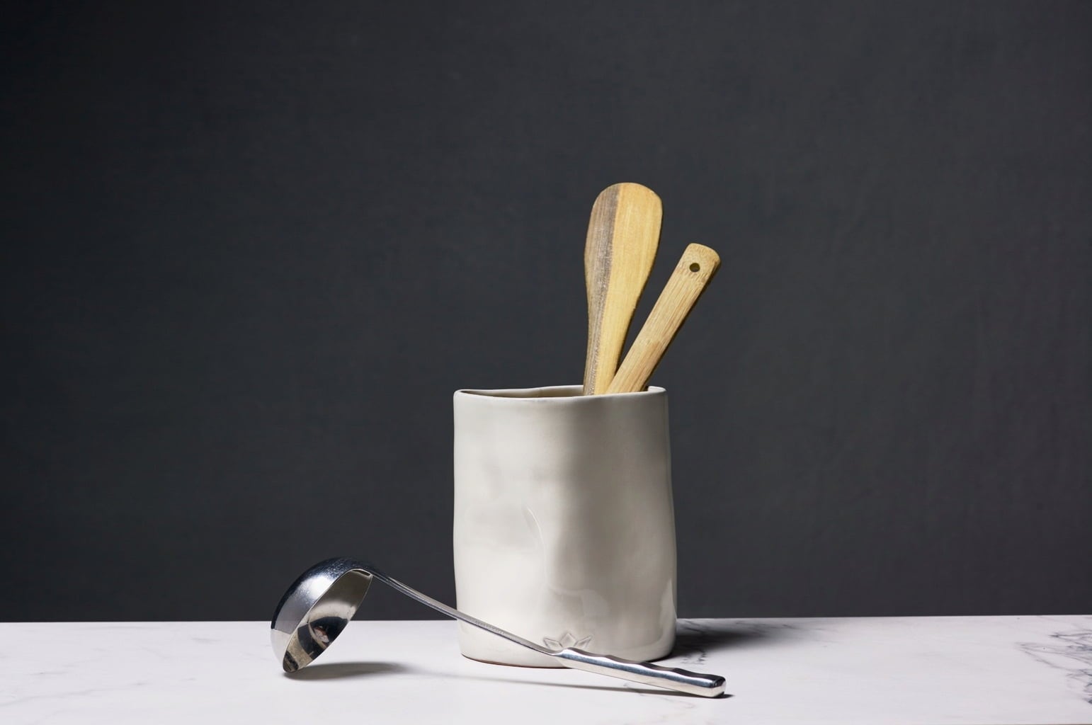 Dutchdeluxes Recipiente de Cerámica para Accesorios de Cocina con Diseño Arrugado, White