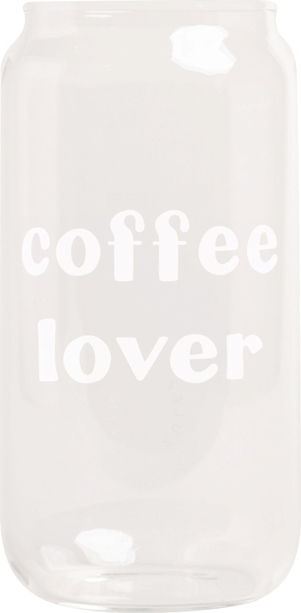 El vaso alto tiene forma de lata y está decorado con un estampado blanco. Perfecto para bebidas veraniegas o batidos, el vaso se puede lavar fácilmente en el lavavajillas.