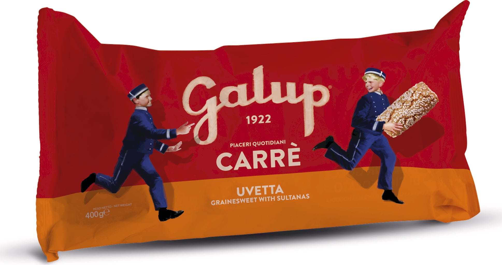 El Carré de pasas es un pastel de levadura natural, enriquecido con suaves pasas sultanas y cubierto con un crujiente glaseado de avellanas y granos de azúcar. Una especialidad que expresa la tradición Galup.