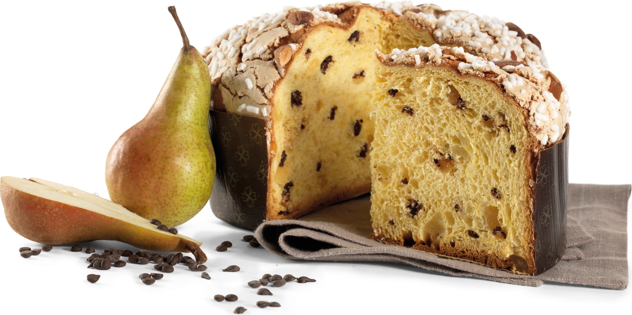 ¿Te encanta la irresistible combinación de fruta y chocolate? Entonces este Panettone Galup de pera y chocolate es justo lo que necesitas. Una masa suave y perfumada, enriquecida con peras confitadas y gotas de chocolate negro, sin pasas sultanas. Todo se enriquece con un glaseado de avellanas, almendras enteras y granos de azúcar que le confieren un agradable crujiente.