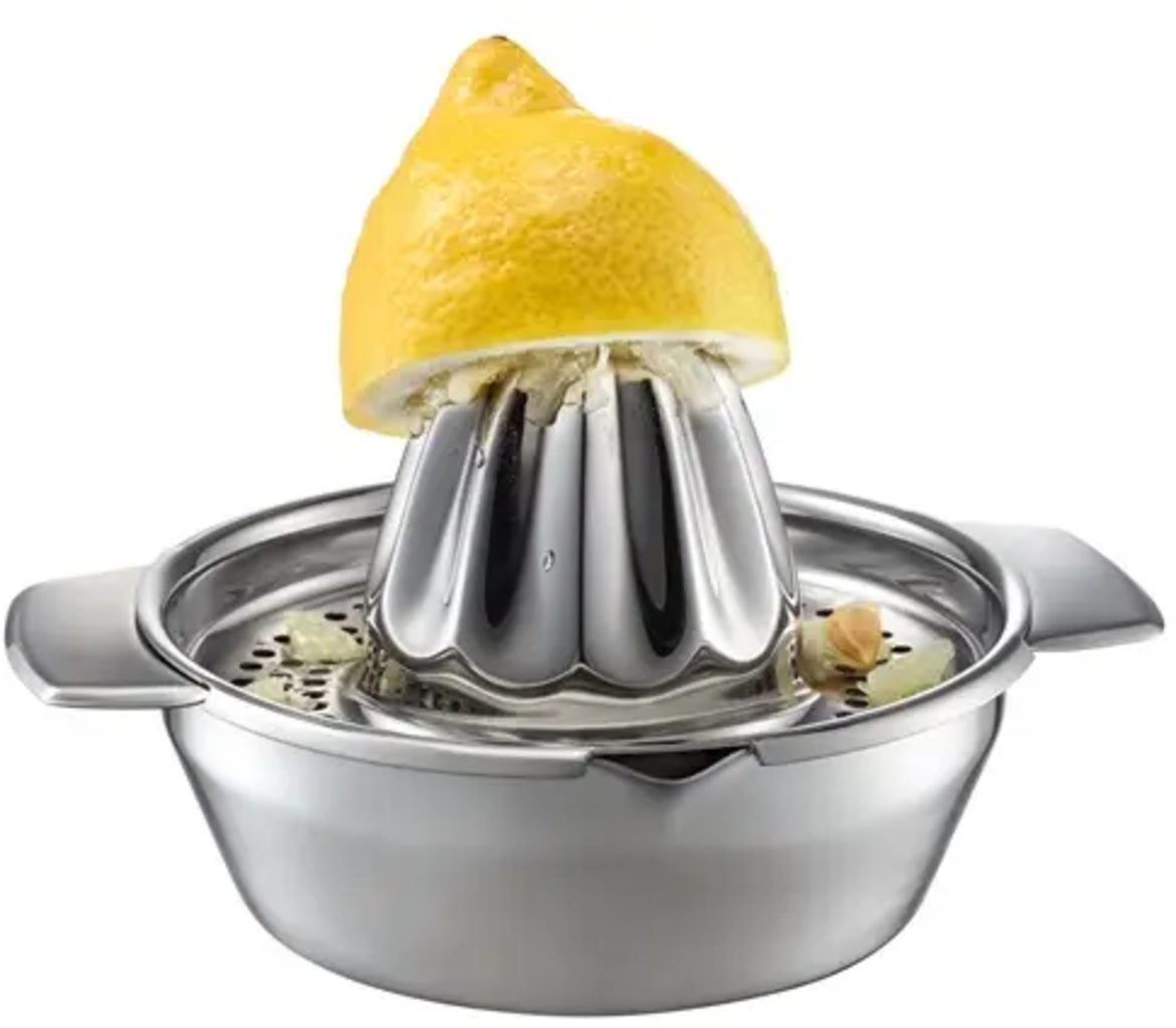 Tanto si necesitas exprimir limones, naranjas u otros cítricos, el exprimidor de cítricos GEFU LEMON simplifica y limpia el proceso. La principal ventaja: las semillas y la pulpa se retienen en el colador superior, mientras que el recipiente inferior recoge solo el jugo puro y transparente.