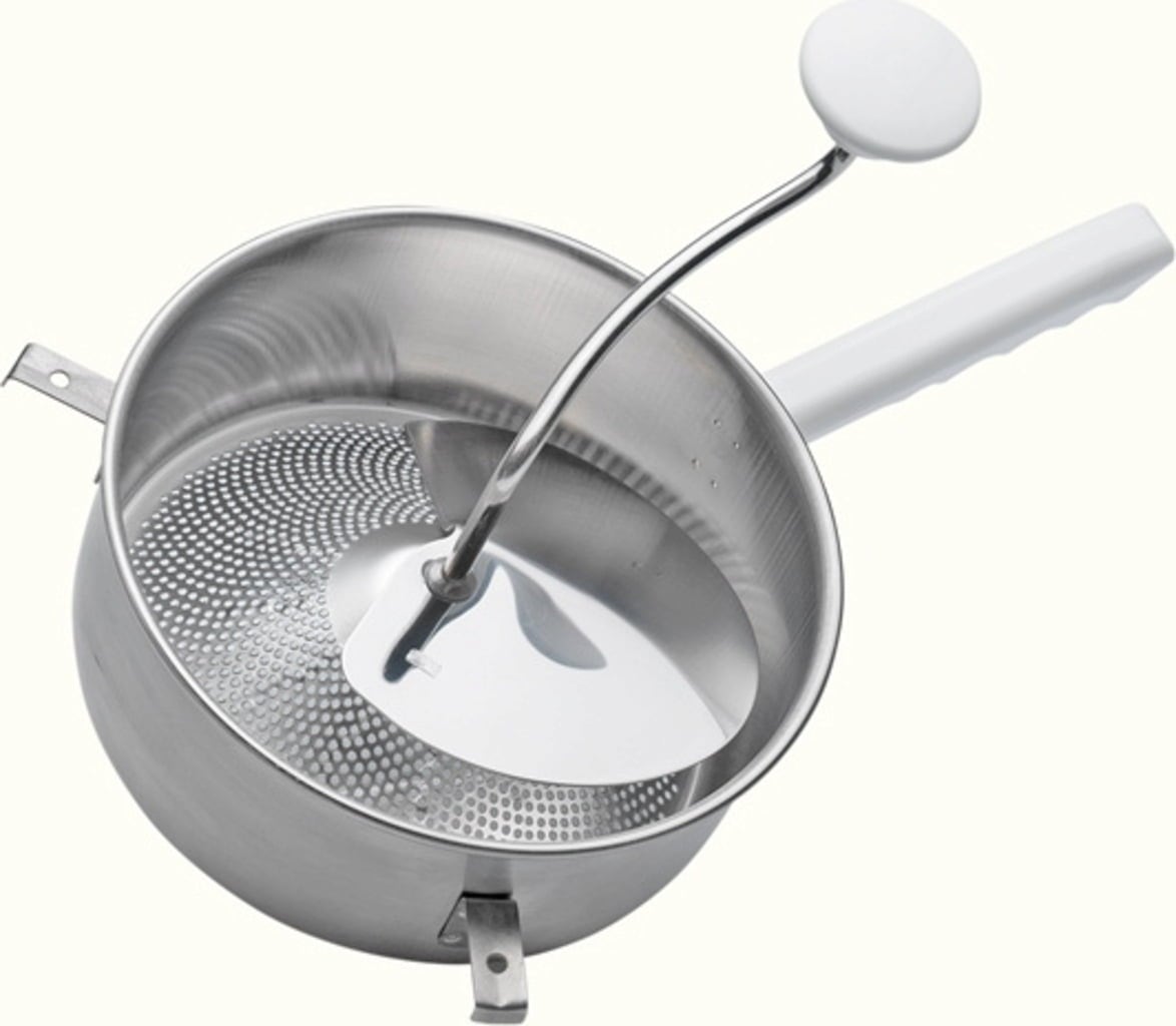 Con una capacidad de 1,5 litros, permite procesar fácilmente grandes cantidades. La función de raspado patentada garantiza que el puré se exprima completamente a través de los orificios de 2 mm, evitando desperdicios. Fabricado en acero inoxidable y plástico de alta calidad, este resistente utensilio es un clásico atemporal y, por supuesto, apto para lavavajillas para una limpieza fácil.