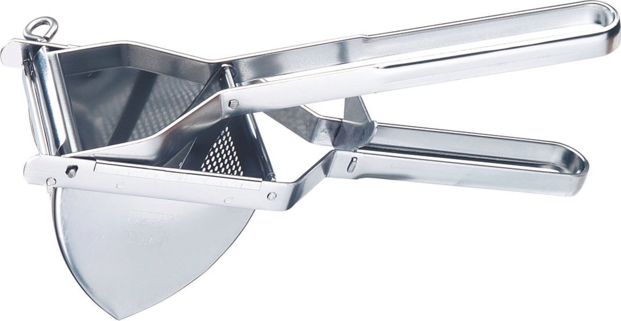Fabricado en acero inoxidable de alta calidad, garantiza una durabilidad extrema. Las asas ergonómicas garantizan un uso cómodo con el mínimo esfuerzo. Además, el sistema de pasador de seguridad facilita el desmontaje de la prensa para una limpieza higiénica: ambas partes funcionales pueden introducirse directamente en el lavavajillas.