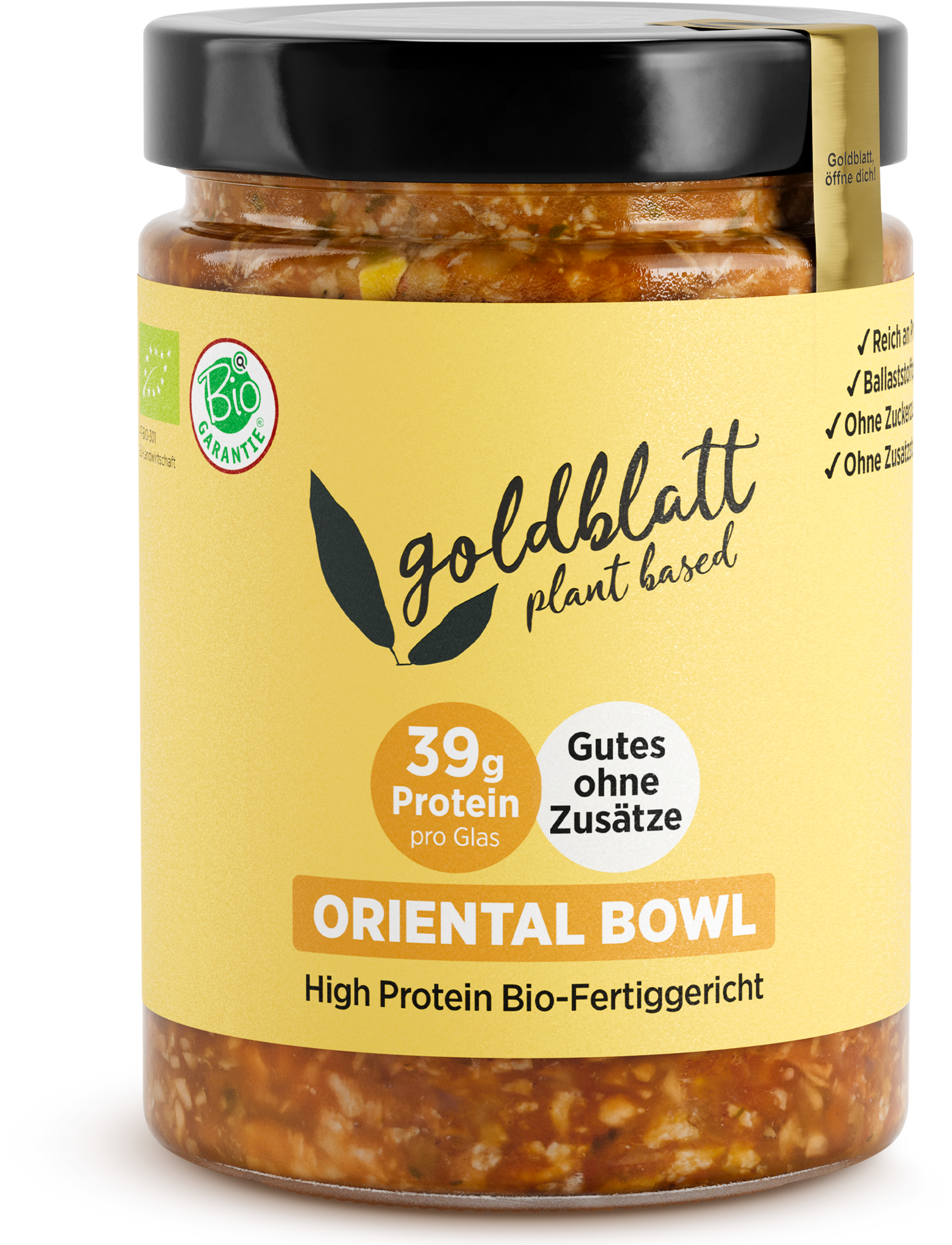 ¡Puro exotismo! Alubias blancas, lentejas y sabroso picadillo de soja se mezclan con especias orientales en este Bowl Oriental de Goldblatt, creando una explosión de sabor con cuerpo y rica en proteínas. Un plato que invita a los sentidos a viajar.