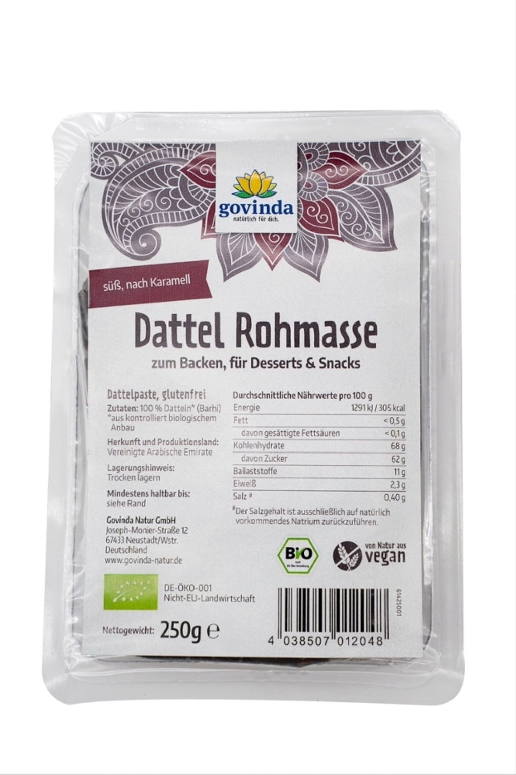 | Operador del sector alimentario responsable: | Govinda Natur GmbH, Joseph-Monier-Straße 12, 67433, Neustadt an der Weinstraße, Alemania, www.govinda-natur.de |