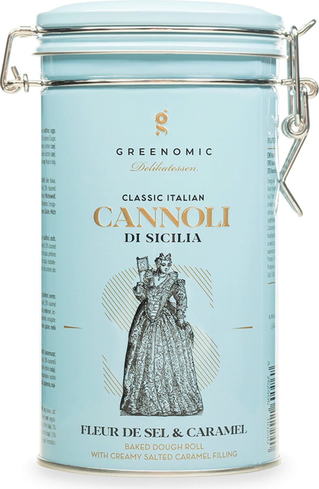 Los cannoli son un postre siciliano clásico que consiste en una masa crujiente y un relleno cremoso dulce. Son ideales para acompañar al café o para saciar las ganas de postre durante el día. El envase de lata está equipado con un práctico cierre de clip para mantener los cannoli siempre frescos.