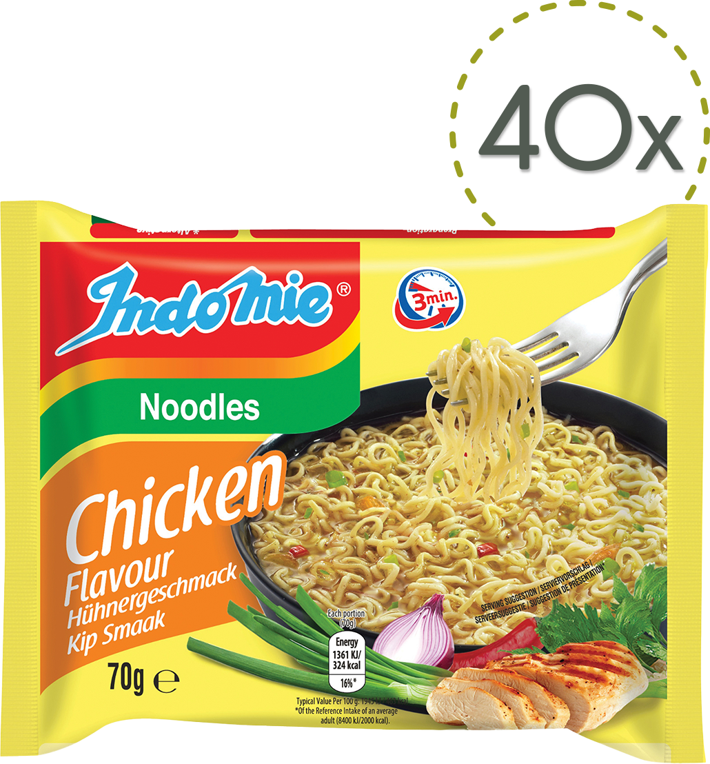 Indomie Sopa Instantánea de Fideos con Sabor a Pollo, 70 g - 40 unidades