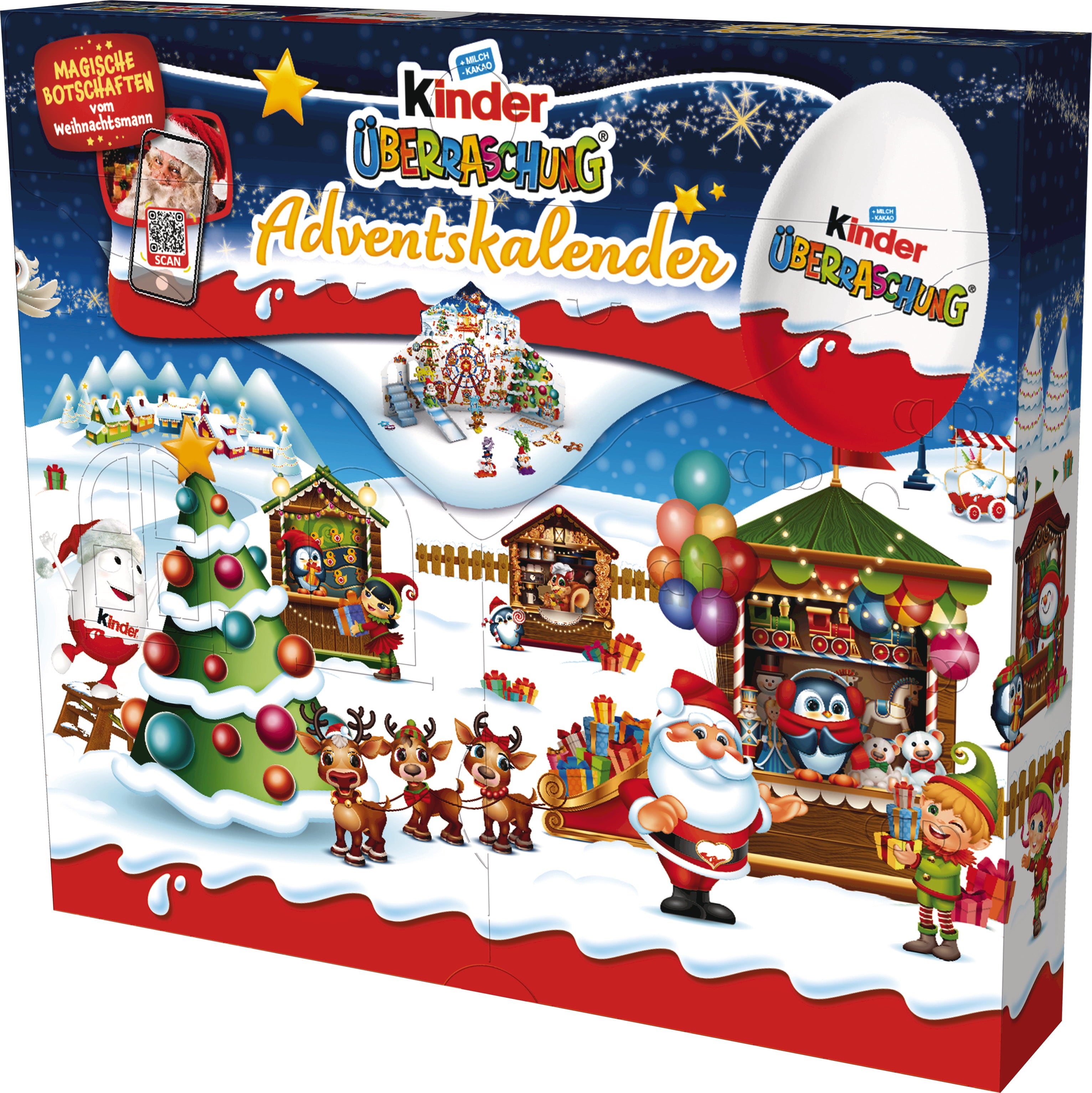 ¡La alegría de los niños al abrir un huevo Kinder todos los días será increíble! En este bonito calendario de Adviento, detrás de cada puerta se esconden 24 huevos de chocolate con una sorpresa navideña en el interior. Una fiesta mágica y divertida que hará que la anticipación de la Navidad sea aún más alegre y dulce.