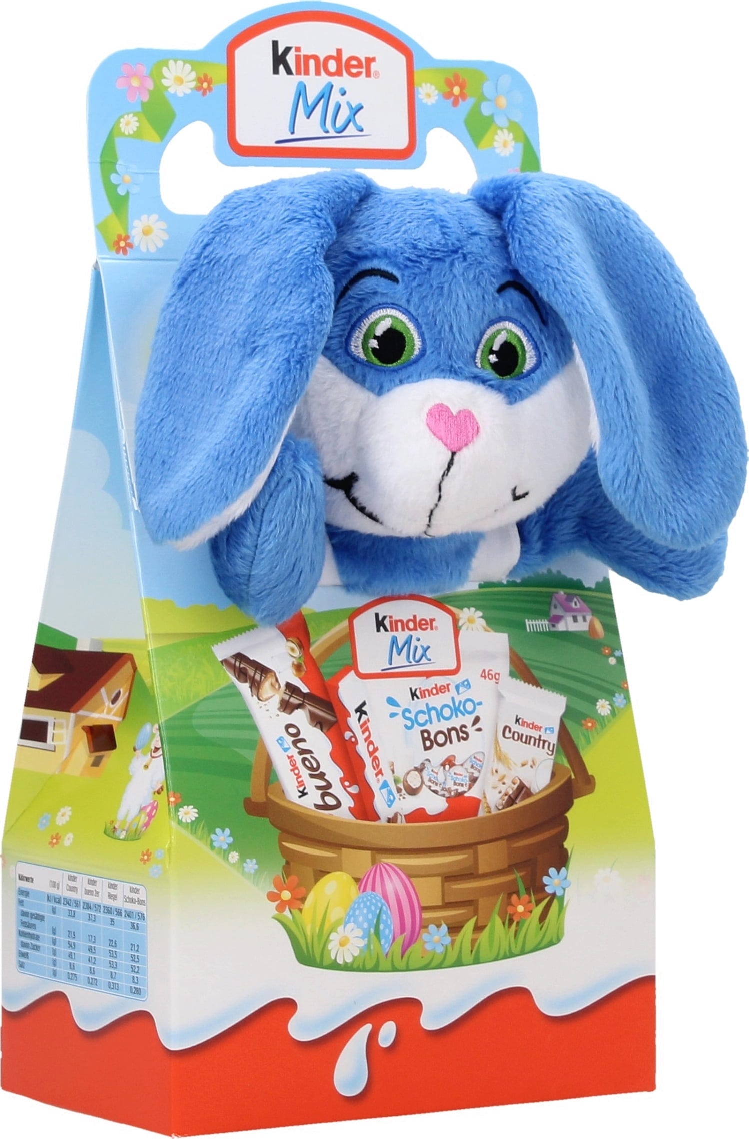 ¡Un surtido tan bonito como delicioso y que enamorará a tus hijos! En el interior, un peluche muy suave para abrazar y una mezcla de las 4 variedades Kinder más populares: