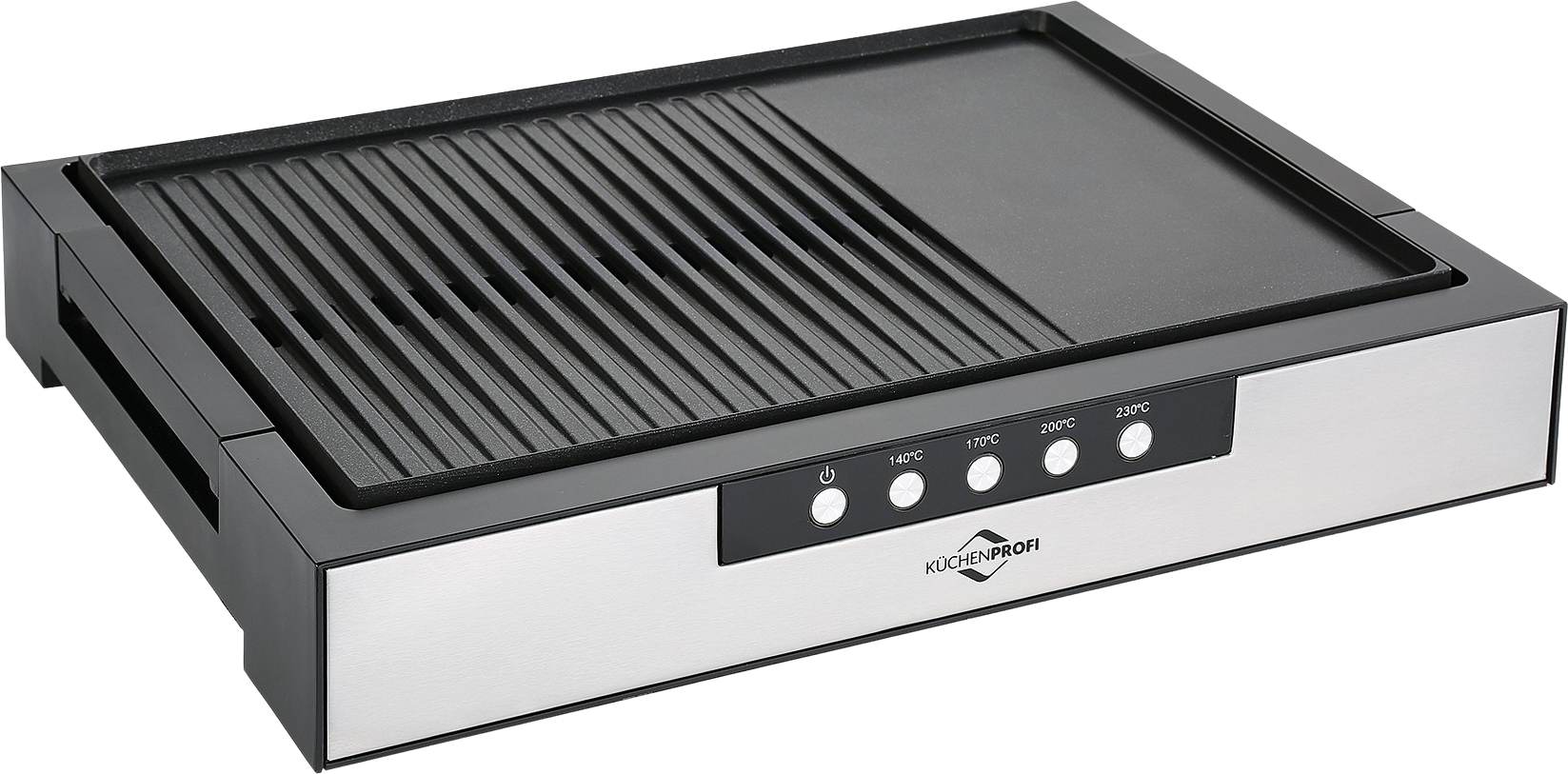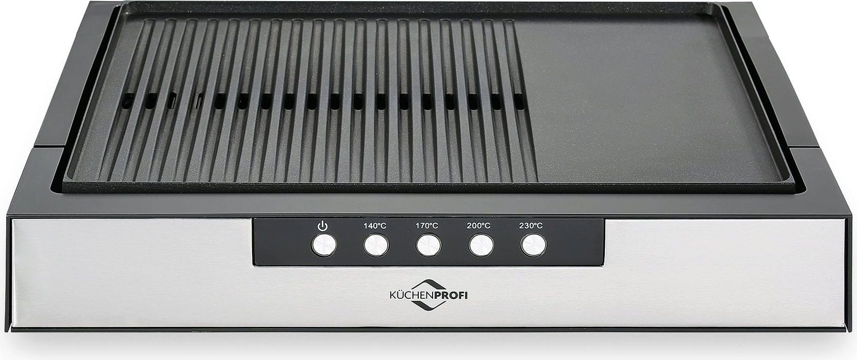 - Amplia placa de parrilla con superficie estriada y lisa (42,5 x 30 cm)