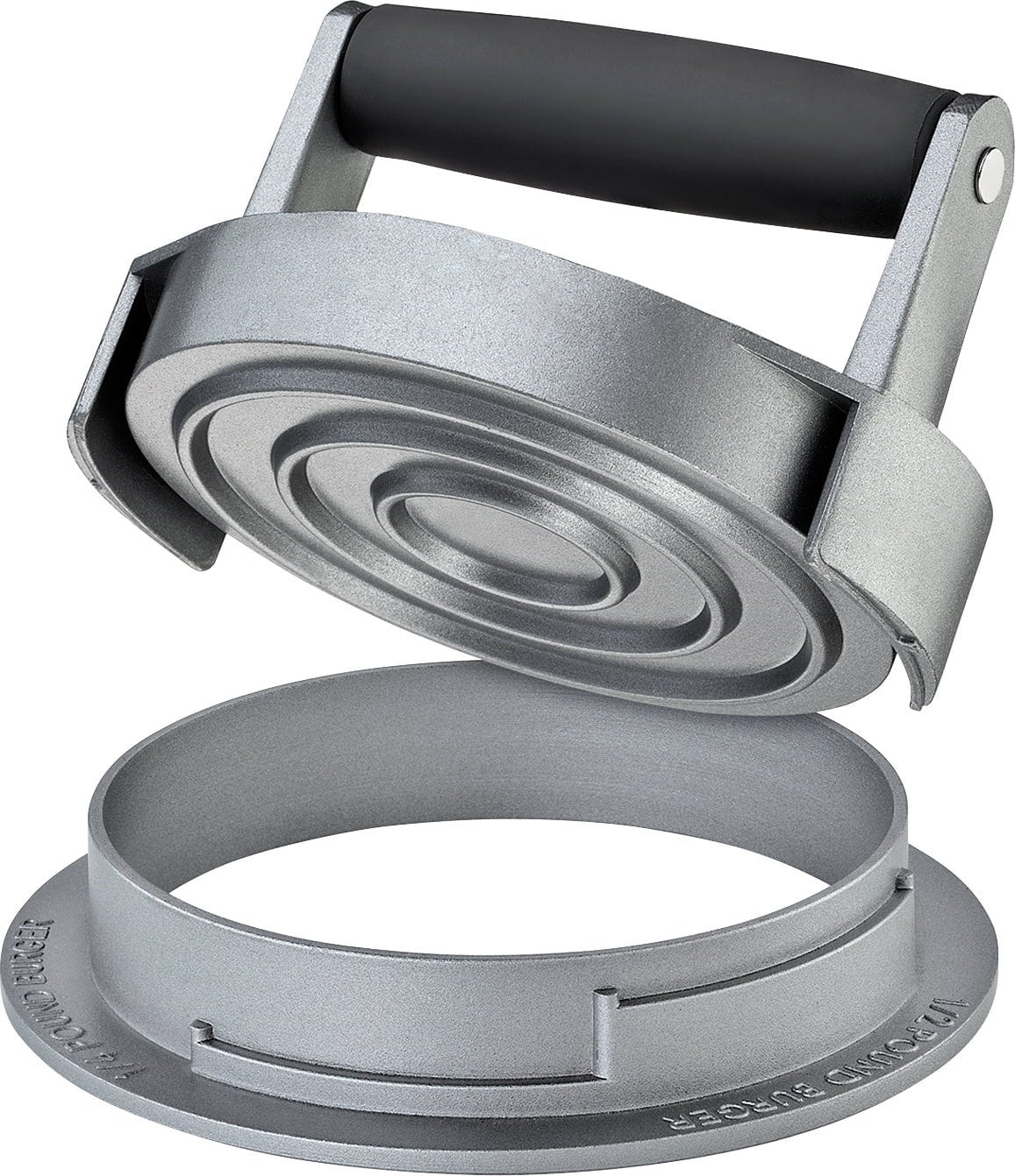 Perfecto como regalo para todos los amantes de las hamburguesas, pero también ideal para el uso diario en la cocina. La prensa para hamburguesas TRIO de Küchenprofi es fácil de usar y permite formar tres tamaños diferentes de hamburguesas.