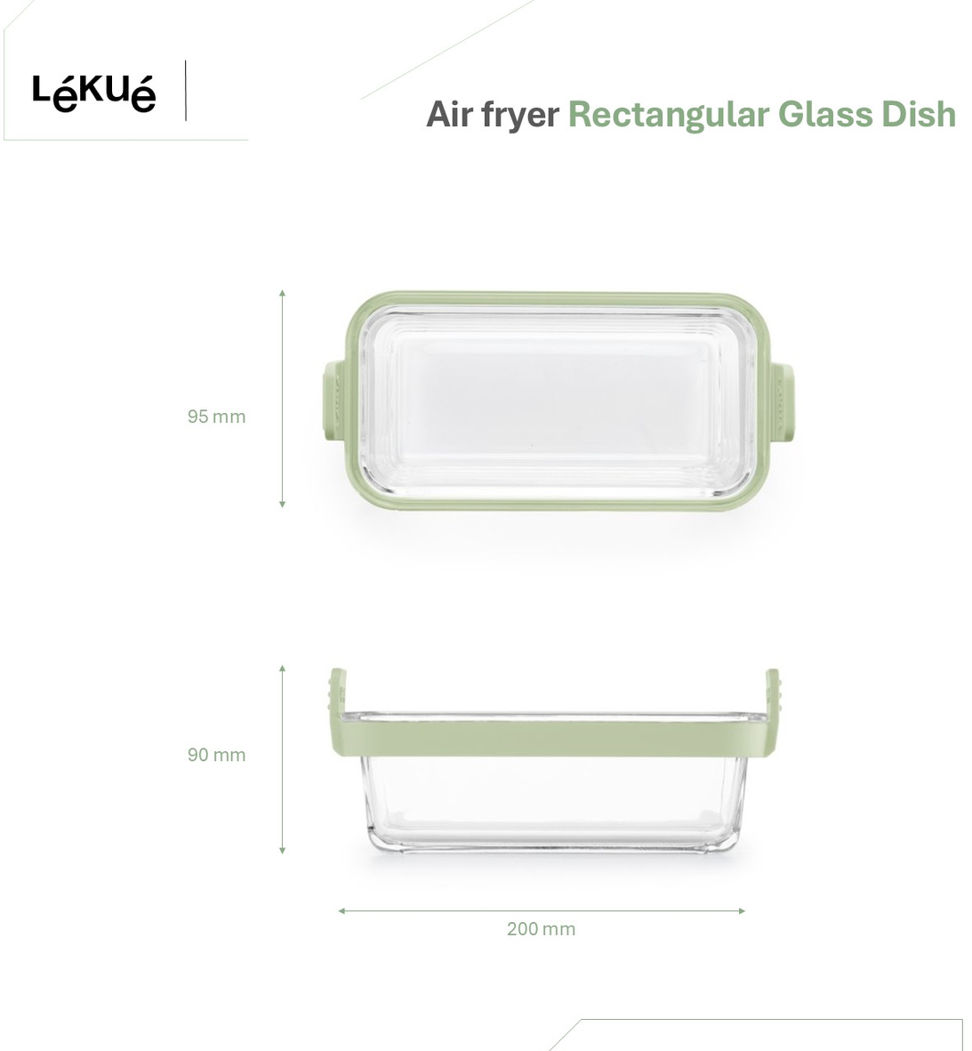 Lékué Molde Rectangular de Vidrio para Air Fryer, Set de 2 Piezas