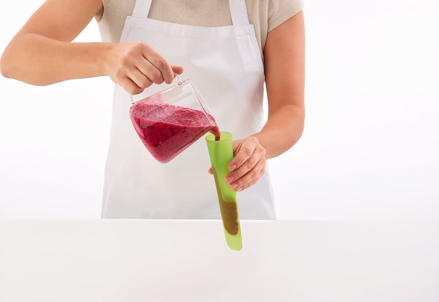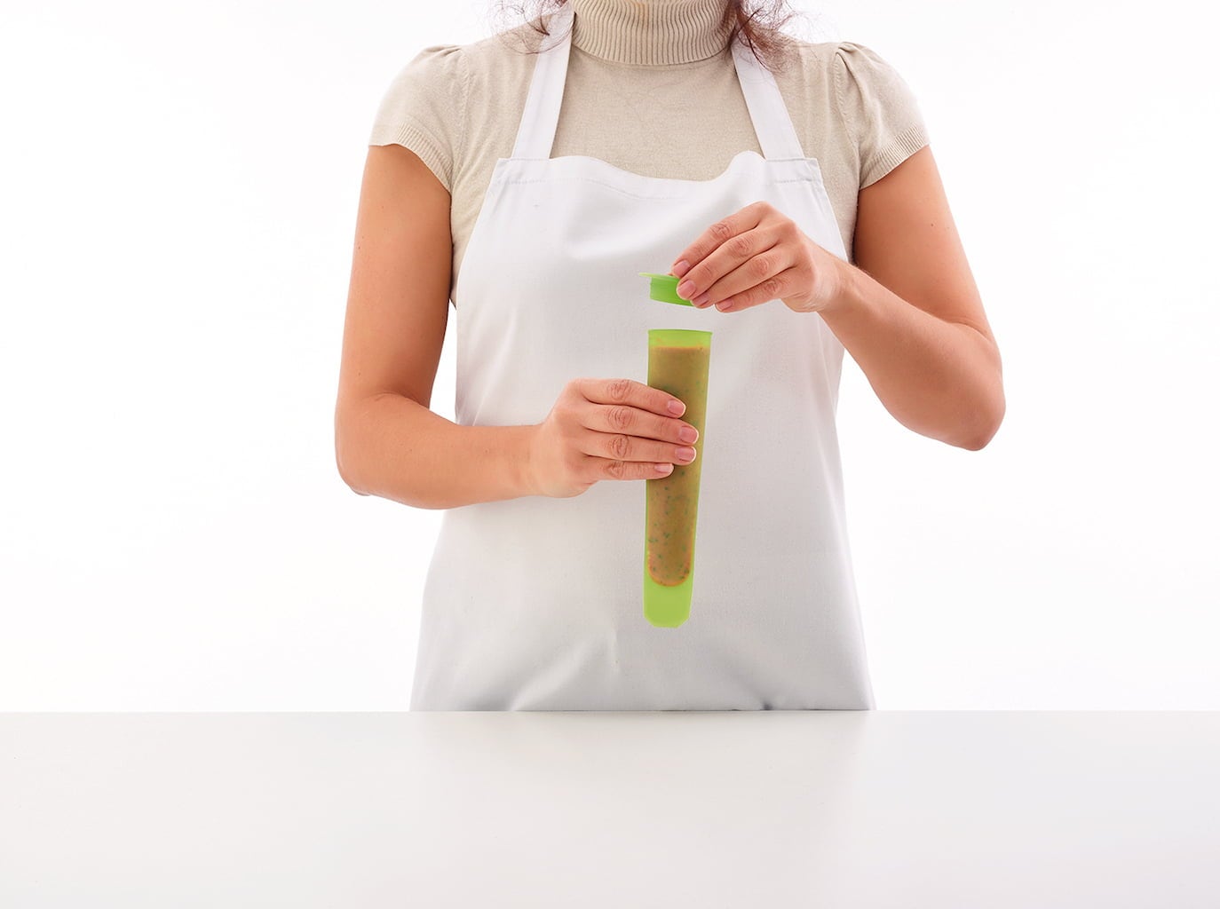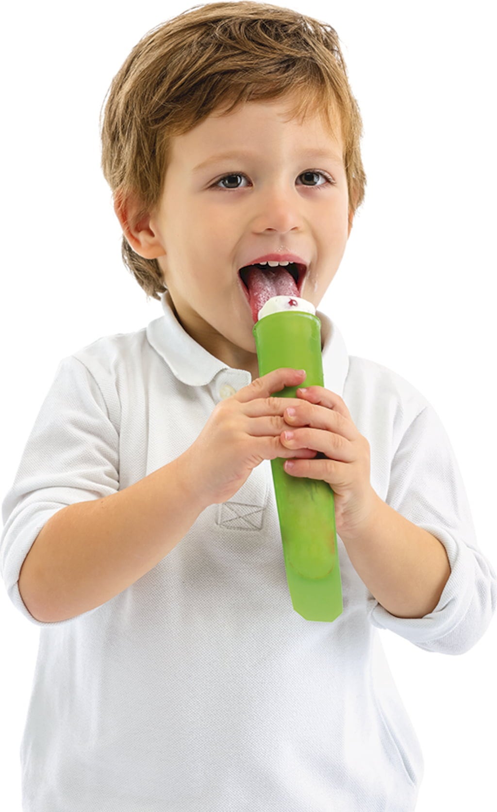 Prepara junto con tus hijos una colorida variedad de deliciosos caprichos. Ya sea con zumo puro de frutas, yogur cremoso o un batido rico en vitaminas, tú decides qué ingredientes prefieres poner en los moldes. Fabricados en silicona platino de alta calidad, los moldes no solo son muy ligeros, sino también especialmente higiénicos y, por supuesto, reutilizables. Cada molde cuenta con un cierre seguro que evita eficazmente los derrames durante la congelación o el transporte. ¡Perfectos para mantener las manos limpias y disfrutar al máximo de los helados!