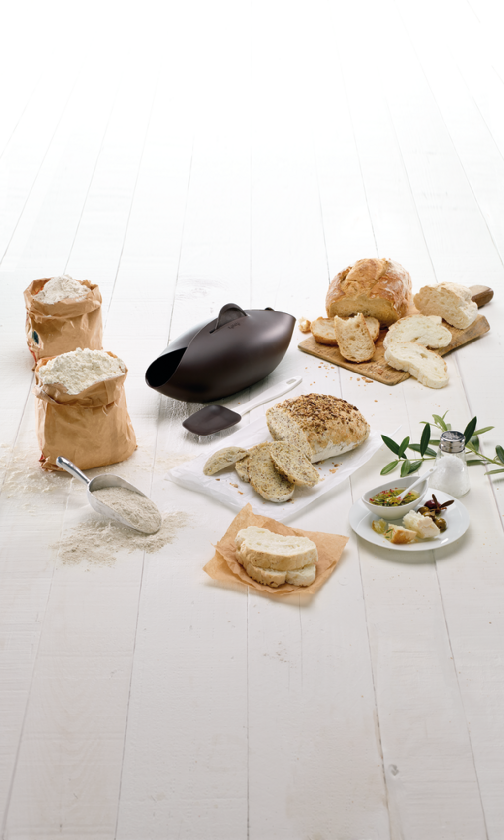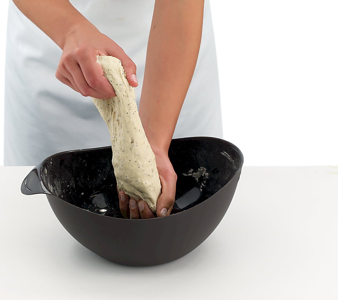 Con este set para pan y baguettes, entrar en el maravilloso mundo de la panadería es fácil y divertido. El corazón del set es el ingenioso molde de silicona para pan. En él puedes pesar directamente los ingredientes, amasar la masa y hornear el pan en el mismo recipiente. Menos desorden en la cocina y más tiempo para disfrutar. Su estructura especial con aberturas laterales garantiza una corteza deliciosamente crujiente, mientras que la forma parcialmente cerrada permite la circulación del vapor, manteniendo el interior del pan agradablemente suave.