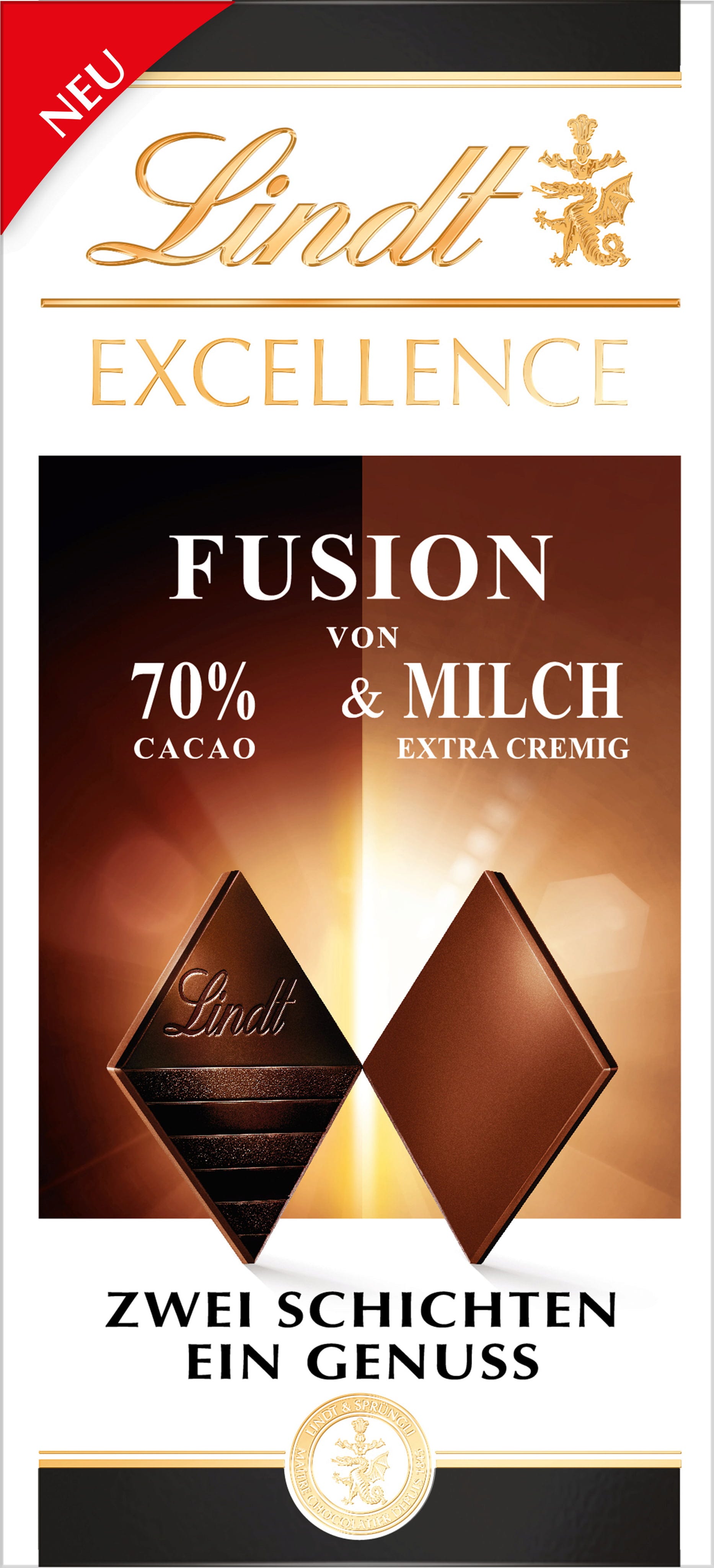 Lindt Excellence Fusion - 70% Cacao y Leche, 100 g