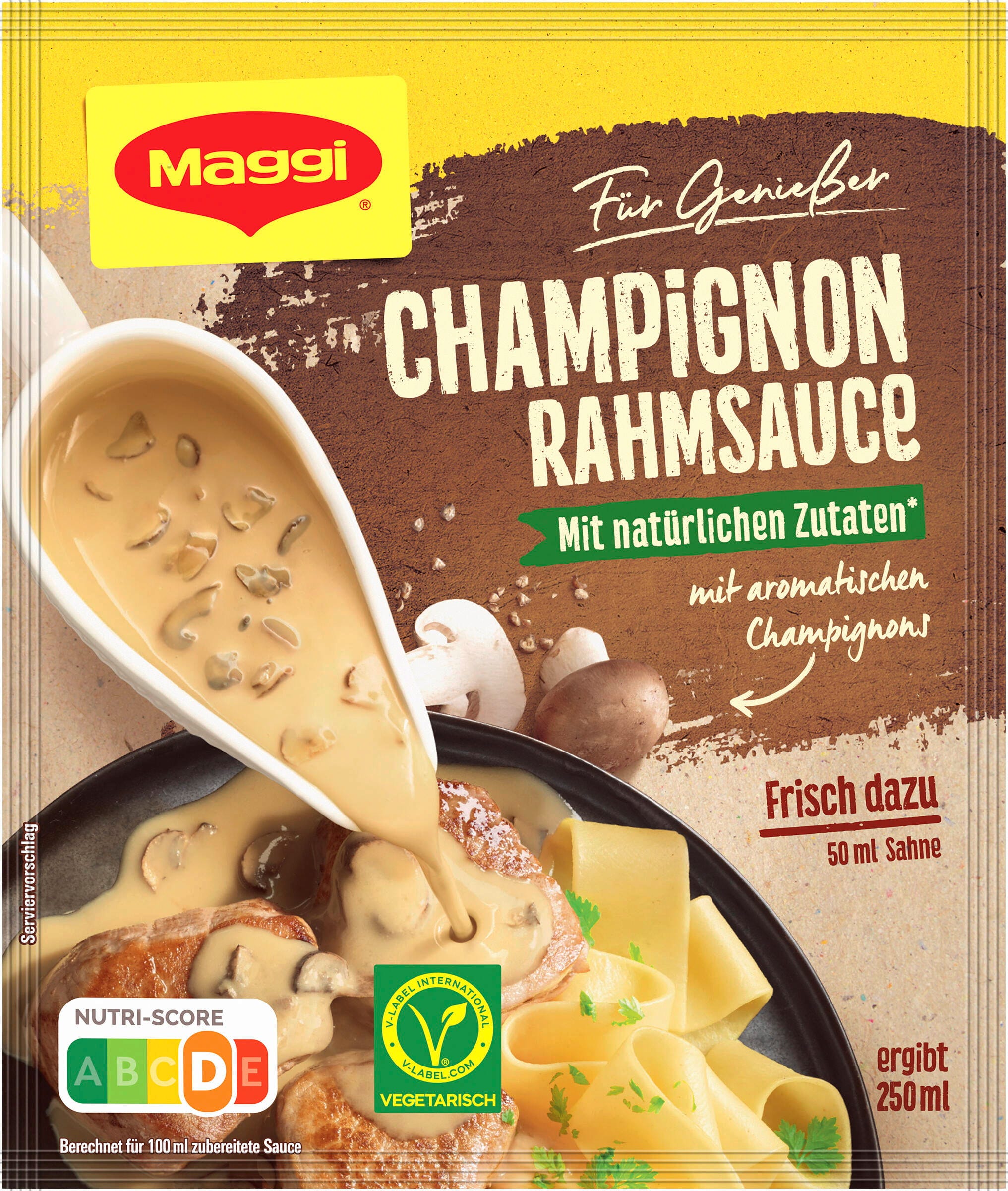 Consejo de preparación: mezclar el contenido de la bolsa con 200 ml de agua fría, llevar a ebullición y cocer a fuego lento durante 3 minutos; añadir 50 ml de nata y calentar. Esto hace unos 250 ml de salsa (para 2-3 raciones).